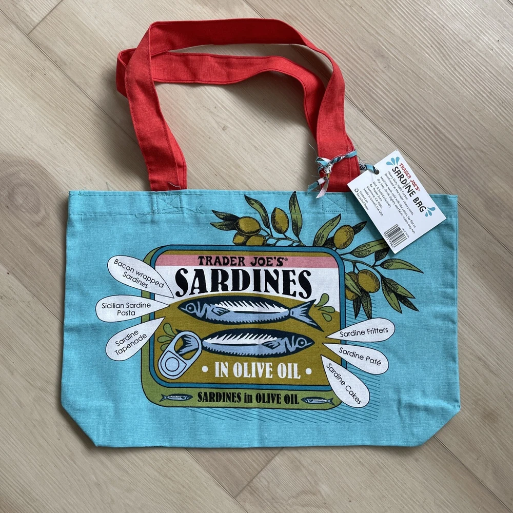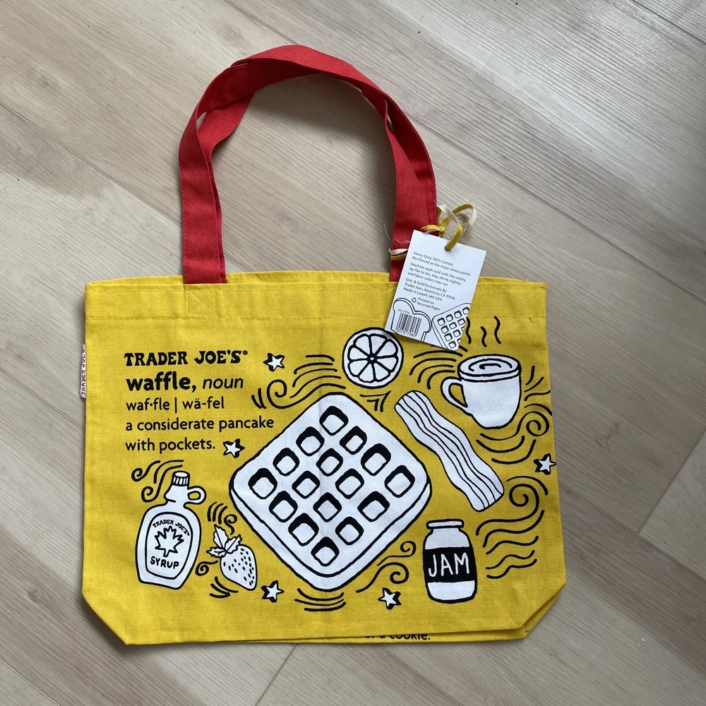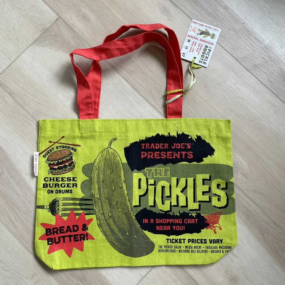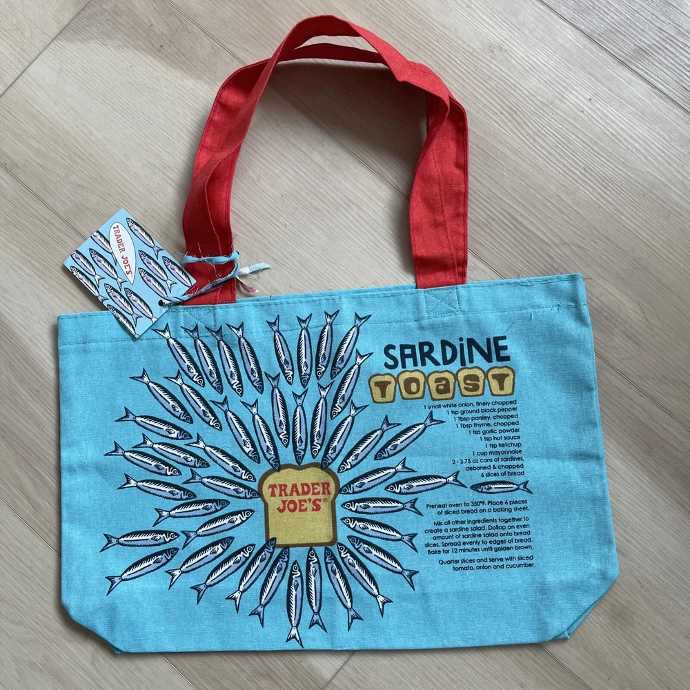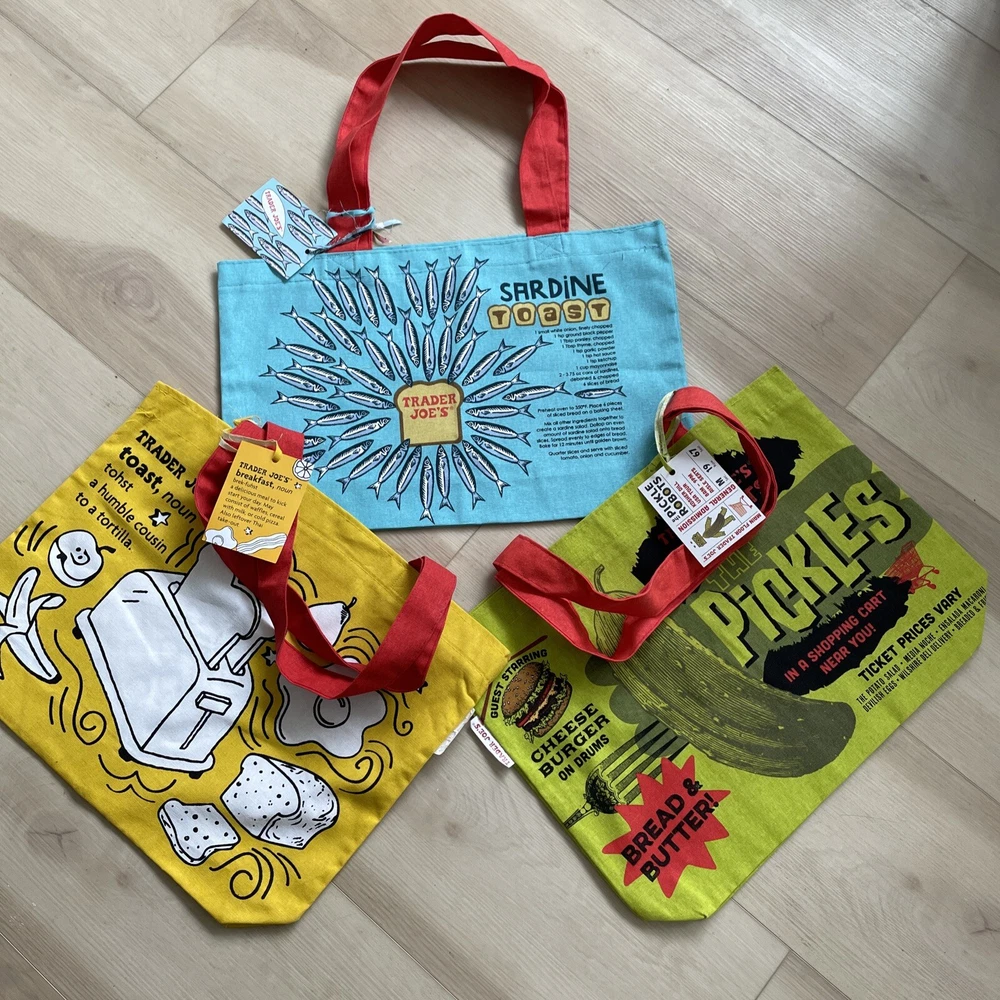 HomeSet Of 3 Trader Joe’s Reusable Canvas Shopping Bag Sardine Pickle Waffle NWT