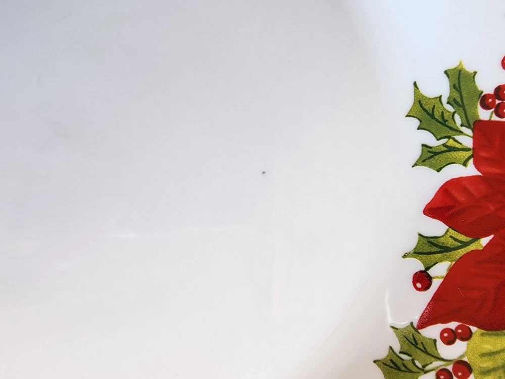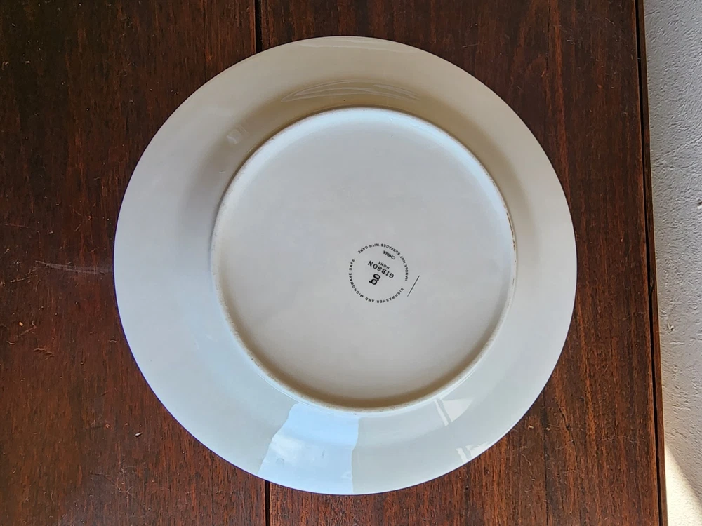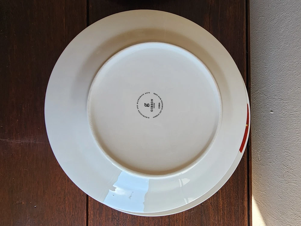 One plate has a tiny black dot on the front and another has a spot that appears to have been made that way. No chips or cracks.