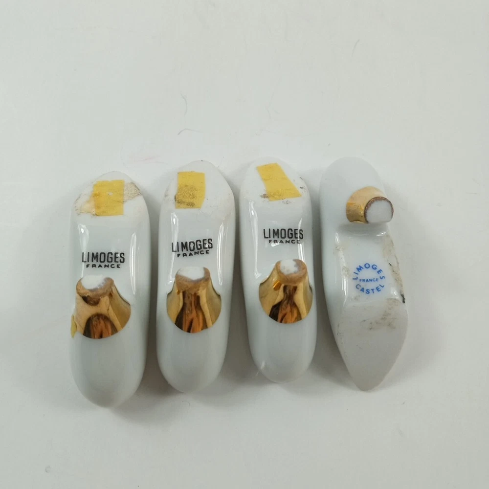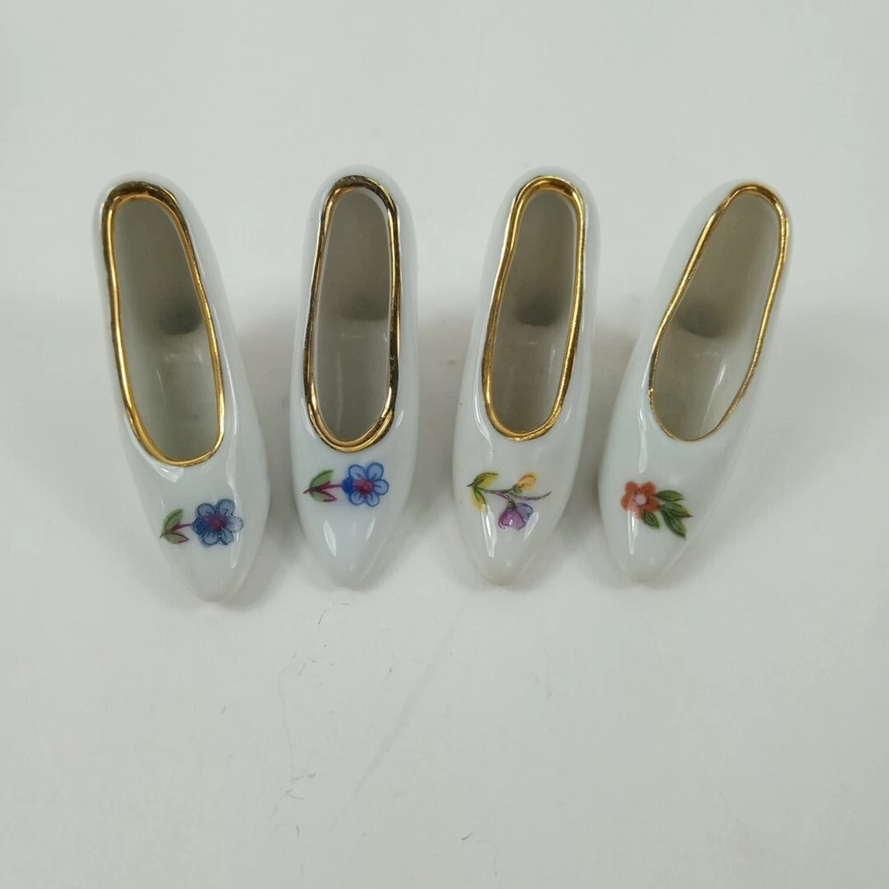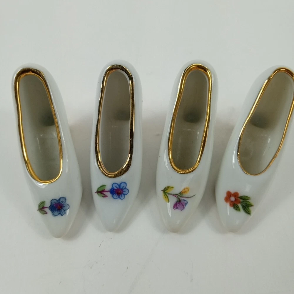 This set of four mini flower shoe figures from Limoges is a charming addition to any collection. Crafted from porcelain, these figurines feature a delightful floral pattern and come in a multicolor design. Each figurine is intricately detailed and portrays a shoe subject, making them perfect for collectors of all types. Whether you're a shoe enthusiast or simply looking to add to your decorative collection, these Limoges mini flower shoe figures are sure to impress.