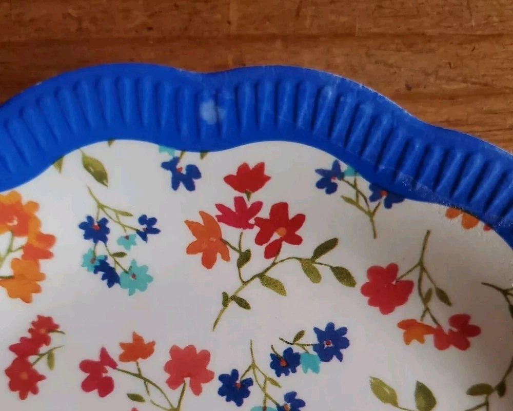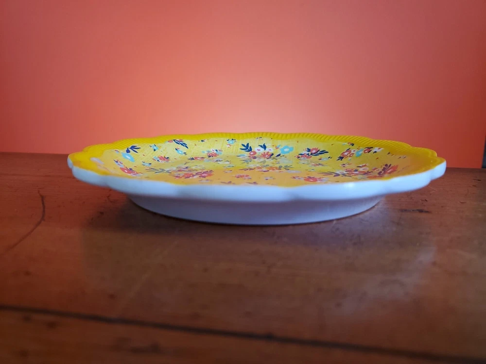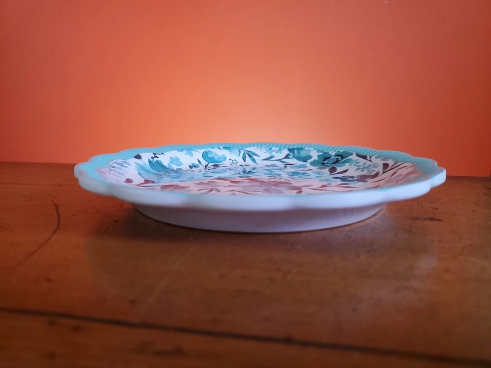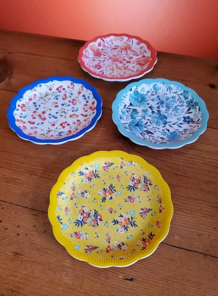 Lot of 4 6 1/2" melamine Desert/Cake Plates In Very Good Pre-owned condition See Pictures Blue Plate Has a White Blemish on its outer edge Thanks for Looking Reach out With any questions you might have Lot 53