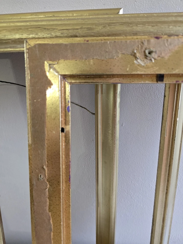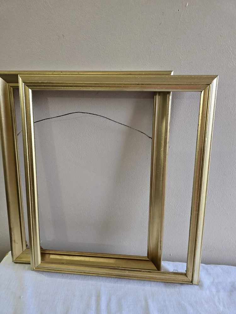The frames have scratches. No glass. frame size photo size 16 x 13 x 1-1/8 in 11 x 14 in 15-7/8 x 13-7/8 in 14 x 12 in 15-3/8 x 12-3/8 x 1-3/8 in 13 x 10 in 15-5/8 x 12-5/8 in 14 x 11 in