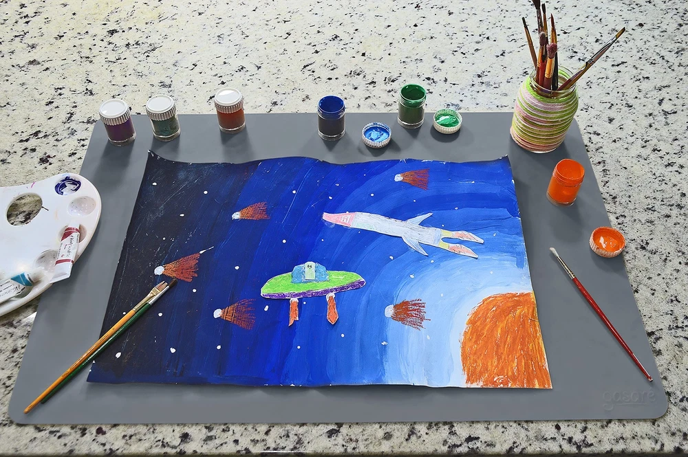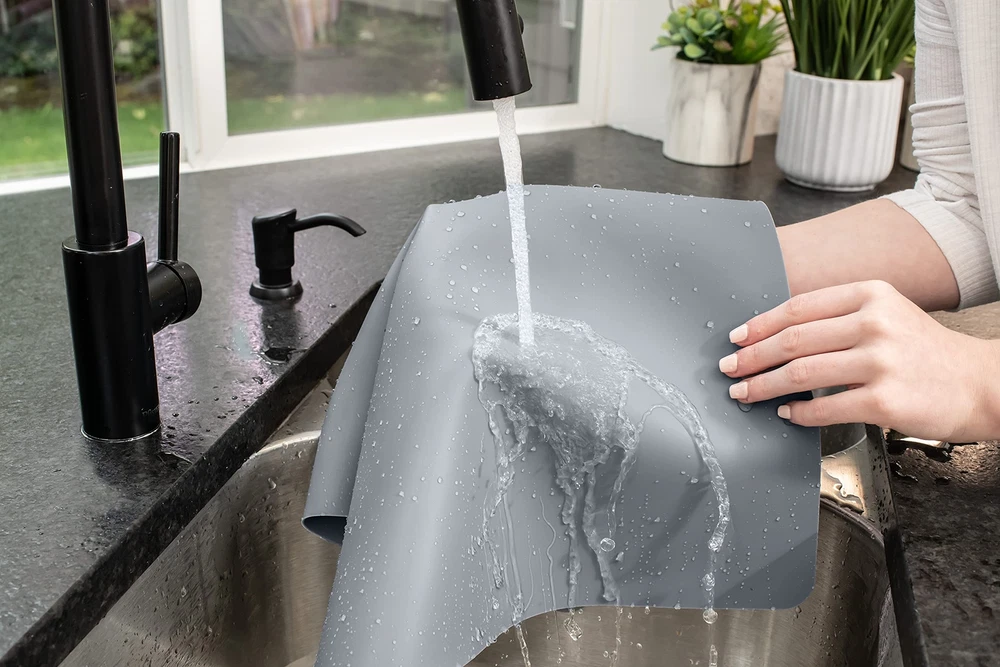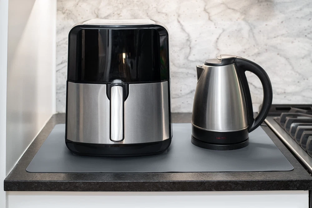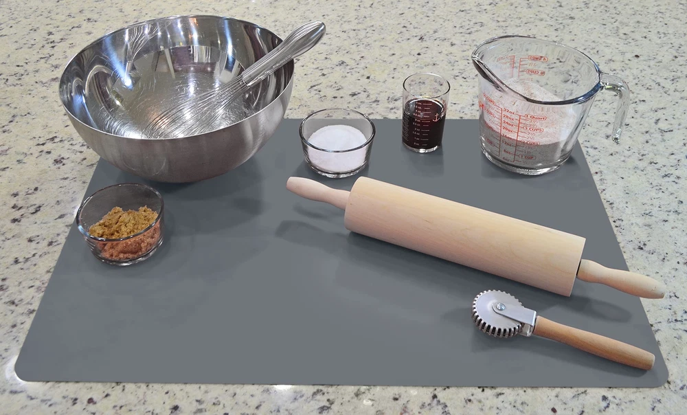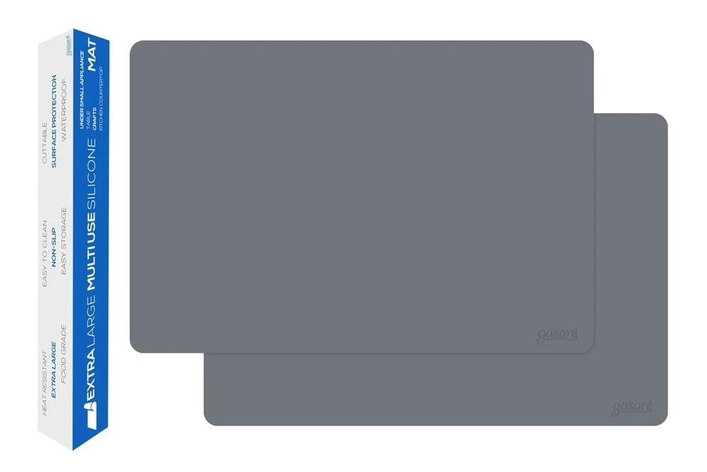 2 Pack Counter Protector Mats - These silicone mats protect quartz and granite kitchen counters, among other materials and surfaces, against spills, scratches, grease, and high temperatures Heat Resistant - Resist temperatures up to 446°F. Ideal for placing under appliances such as air fryers, toaster ovens, coffee makers, and other appliances, as well as hot pots and pans Durable and Aesthetic - Made from premium quality food-grade silicone material that doesn't wear out or break. Same non-slip texture for both sides. Up to 30% thicker than other similar countertop protectors. Designed for daily use for years Easy to Clean - Wash with soap and water, wipe with a cloth, or place in the dishwasher; they do not absorb odors Perfect Size - Large and thick size, 25 x 17 inches x 1.4mm (like a 25-cent coin thick). Very Important: They are big; measure where they will be placed. They can also be easily cut to your desired size Packaged and Shipped Rolled - Carefully packaged to avoid permanent wrinkles. It lies flat and without wrinkles. Easy to store; roll them up and place them in the product box Trusted Brand Since 2012 - Specializing in silicone products, the brand is a registered trademark in the USA