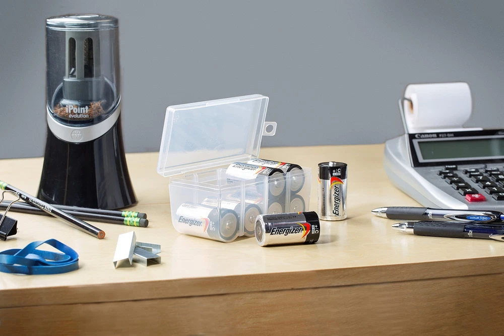 This Set of 4 - C and D Battery Storage Boxes is an excellent battery organizer for storing and protecting C and D batteries. These plastic battery storage boxes holds up to eight batteries at a time and includes a movable divider to help you keep fresh and dead rechargeable batteries separate. Set of 4 - C and D Handy Battery Storage and Organizing Boxes Each Box Provides Storage for up to 8 Batteries - Batteries Are Not Included Constructed from High Impact Plastic - Easy for Carrying Around Efficiently Snap Lid Keeps Batteries Neatly Organized and Safely Protected Inside Includes Divider for Separating Live Batteries from Dead - Good for Keeping your Batteries in While Traveling or Camping