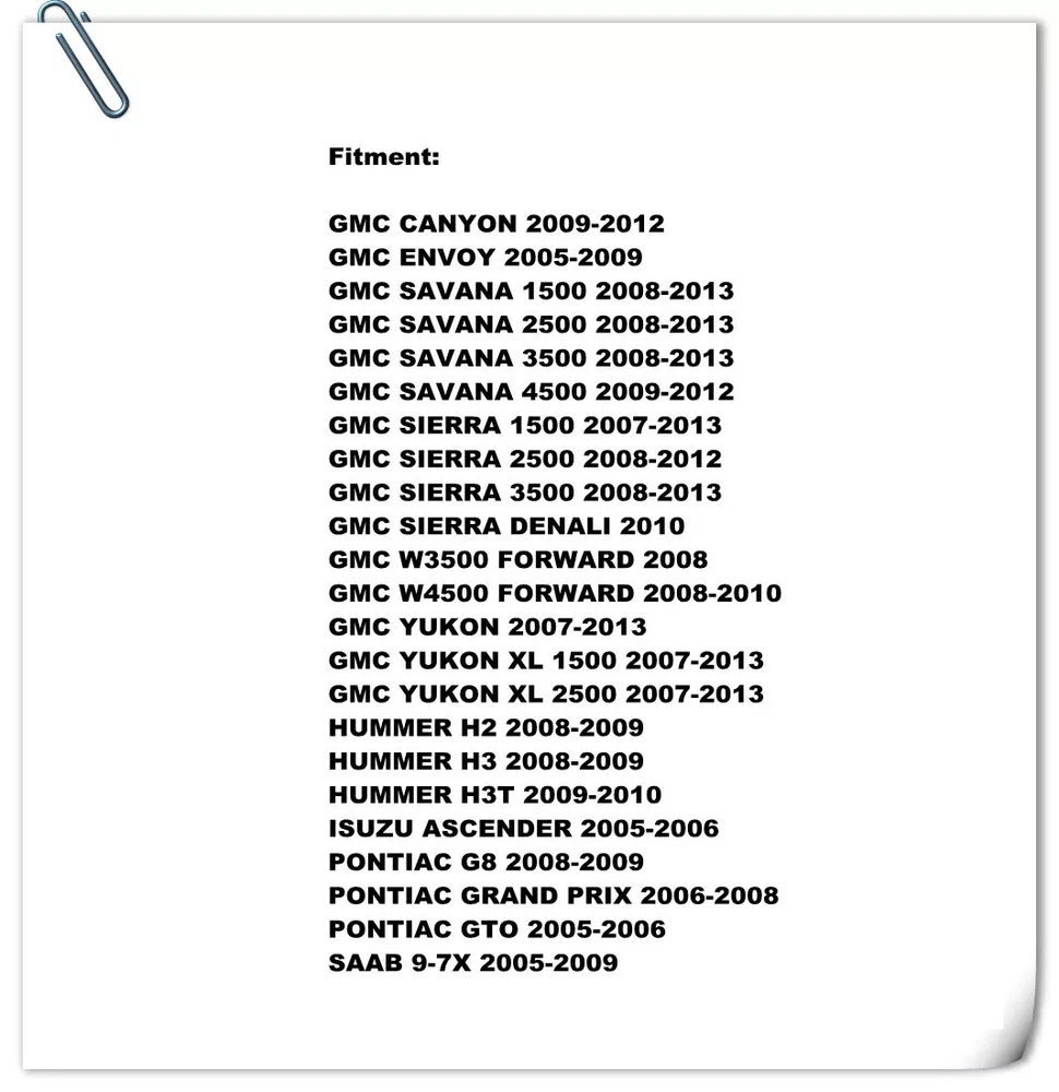 Description: Brand New Ignition Coil Connector: 4 Pins Connector Gender: Female Terminal Gender: Male Terminal Type: Blade Voltage: 12V Manufacturer Part Number: D510C UF413 12570616 BSC1511 12611424 OEM Part Number: UF413 C1511 1788411 12611424 12570616 B058HE BS-C1511 B058 8125706160 6737002 5C1554 521819 Coils Svfruit Best choice of motor parts Set of 8 For GM OEM Replace 12611424 Ignition Coils LS3 LT1 LSA D510C 12570616 Description: Brand New Ignition Coil Connector: 4 Pins Connector Gender: Female Terminal Gender: Male Terminal Type: Blade Voltage: 12V Manufacturer Part Number: D510C UF413 12570616 BSC1511 12611424 OEM Part Number: UF413 C1511 1788411 12611424 12570616 B058HE BS-C1511 B058 8125706160 6737002 5C1554 521819 Coils Part number: C1511SPEC 2-50227 EBC1789 26A1042 C-721 12570616 178-8411 GN10165 IC533 8265 82653 48713 U5132 12611424 D510C D513A 140043 140043-8 140043K 140043K-8 50227 36-1192 5115 2505-311071 E893 C1351 C1511 C1511-8 C1511DLGKIT 12570616 12611424 2-50069 8125706160 8126114240 5C1154 5C1554 IC533SB UF413T 673-7002 52-1712 52-1819 098622A210 IGC0150 GM1316053 SKIC048 CUF413 2IC422 50227 Feature: 1.Efficient ignition 2.Strong durability 3.High reliability 4.Good compatibility 5.Easy to install and maintain 6.Enhance driving experience Package include: Set of 8 Ignition Coil Pack Fitment For: 2008-2009 Buick Allure V8 5.3L 2008-2009 Buick LaCrosse V8 5.3L 2005-2007 Buick Rainier V8 5.3L 2009-2018 Cadillac CTS V8 6.2L 2006-2007 Cadillac CTS V8 6.0L 2007-2018 Cadillac Escalade 2007-2018 Cadillac Escalade ESV 2007-2013 Cadillac Escalade EXT 2007-2013 Chevrolet Avalanche 2010-2015 Chevrolet Camaro V8 6.2L 2011-2017 Chevrolet Caprice V8 6.0L 2009-2012 Chevrolet Colorado V8 5.3L 2005-2013 Chevrolet Corvette 2008-2014 Chevrolet Express 1500 Van V8 5.3L 2008-2014 Chevrolet Express 2500 Van V8 4.8L 2008-2014 Chevrolet Express 2500 Van V8 6.0L 2008-2014 Chevrolet Express 2500 Van V8 5.3L 2015-2018 Chevrolet Express 3500 Van V8 6.0L Flex Fuel 2008-2017 Chevrolet Express 3500 Van V8 4.8L 2008-2014 Chevrolet Express 3500 Van V8 6.0L 2006-2009 Chevrolet Impala V8 5.3L 2006-2007 Chevrolet Monte Carlo V8 5.3L 2007 Chevrolet Silverado 1500 with New Body Style V8 6.0L 2007 Chevrolet Silverado 1500 with New Body Style V8 5.3L 2007 Chevrolet Silverado 1500 with New Body Style V8 4.8L 2008-2013 Chevrolet Silverado 1500 V8 6.2L 2008-2013 Chevrolet Silverado 1500 V8 6.0L 2008-2013 Chevrolet Silverado 1500 V8 5.3L 2008-2013 Chevrolet Silverado 1500 V8 4.8L 2008-2016 Chevrolet Silverado 2500 HD V8 6.0L 2007 Chevrolet Silverado 2500 HD with New Body Style V8 6.0L 2008-2016 Chevrolet Silverado 3500 HD V8 6.0L 2007 Chevrolet Silverado 3500 HD with New Body Style 2014-2017 Chevrolet SS 2005-2006 Chevrolet SSR V8 6.0L 2005 Chevrolet SSR V8 5.3L 2007-2014 Chevrolet Suburban 1500 2007-2013 Chevrolet Suburban 2500 2007-2015 Chevrolet Tahoe 2006-2009 Chevrolet Trailblazer V8 6.0L 2006-2008 Chevrolet Trailblazer V8 5.3L 2005-2006 Chevrolet Trailblazer EXT V8 5.3L 2009-2012 GMC Canyon V8 5.3L 2005-2009 GMC Envoy V8 5.3L 2005-2006 GMC Envoy XL V8 5.3L 2005 GMC Envoy XUV V8 5.3L 2008-2013 GMC Savana 1500 Van V8 5.3L 2008-2015 GMC Savana 2500 Van V8 4.8L 2008-2015 GMC Savana 2500 Van V8 6.0L 2008-2015 GMC Savana 2500 Van V8 5.3L 2008-2017 GMC Savana 3500 Van V8 4.8L 2008-2018 GMC Savana 3500 Van V8 6.0L 2007 GMC Sierra 1500 with New Body Style V8 5.3L 2008-2015 GMC Sierra 1500 V8 6.2L 2007 GMC Sierra 1500 with New Body Style V8 4.8L 2008-2013 GMC Sierra 1500 V8 6.0L 2008-2015 GMC Sierra 1500 V8 5.3L 2008-2014 GMC Sierra 1500 V8 4.8L 2007 GMC Sierra 1500 with New Body Style V8 6.2L 2007 GMC Sierra 1500 with New Body Style V8 6.0L 2007 GMC Sierra 2500 HD with New Body Style 2008-2016 GMC Sierra 2500 HD 2008-2015 GMC Sierra 3500 HD 2007 GMC Sierra 3500 HD with New Body Style 2007-2013 GMC Yukon 2007-2013 GMC Yukon XL 1500 2007-2013 GMC Yukon XL 2500 2008-2009 Hummer H2 V8 6.2L 2008-2010 Hummer H3 V8 5.3L 2009 Hummer H3T V8 5.3L 2005-2006 Isuzu Ascender V8 5.3L 2008-2009 Pontiac G8 V8 6.0L 2005-2008 Pontiac Grand Prix V8 5.3L 2005-2006 Pontiac GTO 2005-2009 Saab 9-7X V8 6.0L 2005-2009 Saab 9-7X V8 5.3L What's the Symptoms of Bad Ignition Coils? A faulty coil could cause major performance and structural issues for your vehicle, so if are experiencing any of the below symptoms, that means you need to check your coils emmidiately 1. Vehicle Hard to Start 2. Check Engine Light On 3. Misfire Engine 4. Poor Gas Mileage Control 5. Diminishing Power Output 6. Oil Leaking NOTE: 1. Professional installation is recommended. 2. Compare the detail sizes with yours, please allow 1-3cm error, due to manual measurement. 3. Please leave a message before you give the bad feedback, if the products have some problems. 4. Thanks for your understanding and have a nice day! Item Specifics Brand MGT Type Ignition Coil Placement on Vehicle Front, Lower Installation Type Bolt-On Connector Gender Male-to-Female Exterior Painted Position Front Inside Lift Type plug-in Voltage 12V Connector 4 pins Color Black Fitment Type Direct Replacement Mileage More Than 100,000 miles Features Efficient ignition.Strong durability.High reliability Features 2 Easy to install and maintain.Enhance driving experience Features 3 Good compatibility.Brand New Interchange Part Number 12611424, 5C1554, 521819 ,UF413, D510C, C1511, D513A Other Part Number 8125706160, UF-413, BSC1511, 12558948, D510C UF413 Superseded Part Number UF413, E893, 52-1819, IC533 Manufacturer Part Number D510C UF413 12570616 BSC1511 12611424 Item including Set of 8 Ignition Coil Pack Manufacturer Warranty 2 Years Payment 1. It will be much appreciated that you finish your payment asap or it will make UPI (unpaid item case) on your account leading to be suspended or restricted by eBay when those UPI cases carry over to certain amount. 2. Any problems please contact us for more details. Shipping 1. All items will be shipped to buyer's ebay address. 2. All items will be shipped wit