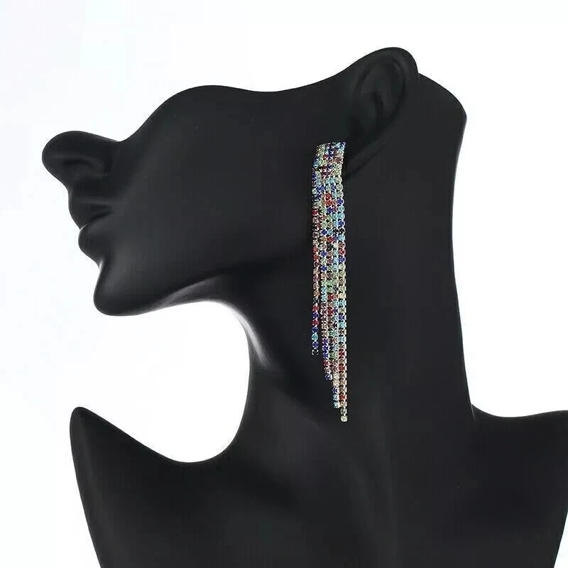 Earrings Women Rhinestone Crystal Long Tassel Bridal Drop Dangling Gift Earring Type: Drop Earrings Item Type: Earrings Fine or Fashion: Fashion Style: Trendy Metals Type: zinc Alloy Shape\pattern: Water Drop Gender: Women Material: zinc Alloy Model Number: WX006 Occasions: Wedding/Party / Prom / Anniversary Color: Gold/Silver/Multi-Color Gift for: Mom / Girlfriend / Wife / Daughter / Female friend Weight: 14g Package: Bubble envelope Notes: Due to the light and screen setting difference, the item's color may be slightly different from the pictures. Please allow slight dimension difference due to different manual measurement. Package Includes: 1 Pair of Earrings