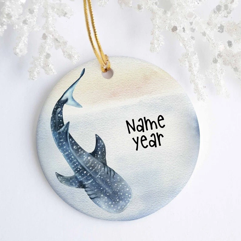 Shark Personalized Ornament - Ceramic - Porcelain - Holiday Ornament - Christmas - Whale Shark Ornament - Ocean Gift - I Love Sharks If you need to buy more, please inbox us We have two material options (Ceramic & MDF), please read the product description as below to choose your favorite options. MDF Ornaments 1-sided design. Print type: Sublimation printing. Crafted from durable MDF with a high-gloss plastic finish so your designs last a lifetime. Shapes: Round, star, heart and oval . Product Dimensions: Circle & Heart, 2.75” tall; Oval & Star, 3.25” tall. Ships with a festive gold cord for easy hanging. CERAMIC Ornaments 125" (3mm), 2.75" height (circle), thick high-quality porcelain One-sided print Hole for the hanging string Gold-toned string included Available in 4 shapes - Snowflake, Star, Heart and Circle The height of the hole can slightly deviate Shipping, Return and Refund Policy On average, merchandise is produced and shipped from our facility 2-4 business days after purchase. Standard Shipping: 5-7 working days for USA. Please contact us if you have any dissatisfaction with the item you buy so that we give you the solution. It is easier for us to handle your issue if you send us the proof like an image. We can replace another within 30 days without fee if the item is defective, damaged, or an error is made on our end.