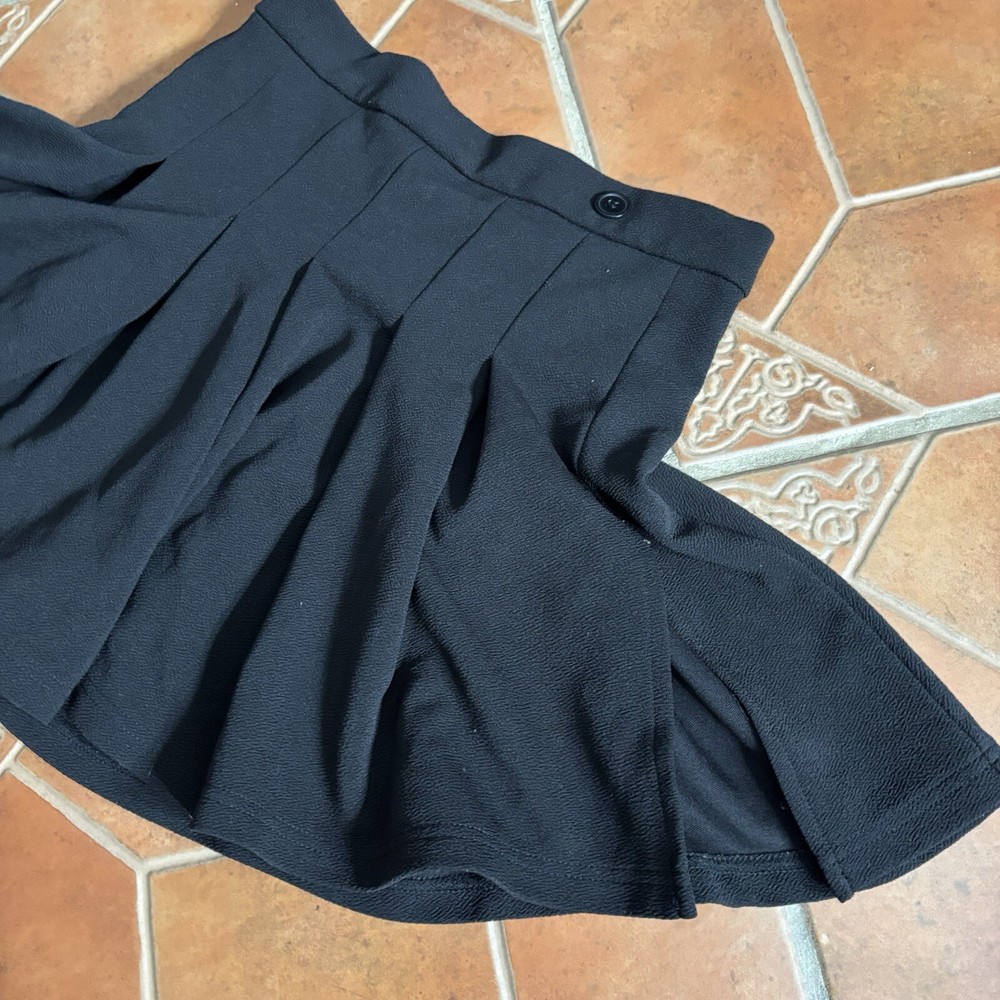 Shein Split Thigh Pleated Black Tennis Style Mini Skirt Womens Size M In good overall condition, no tears/holes or stains. Brand label is faded but says fits a women’s size medium. Has manufacturer zipper and button. High waisted and pleated to look like a tennis skirt. Split thigh.