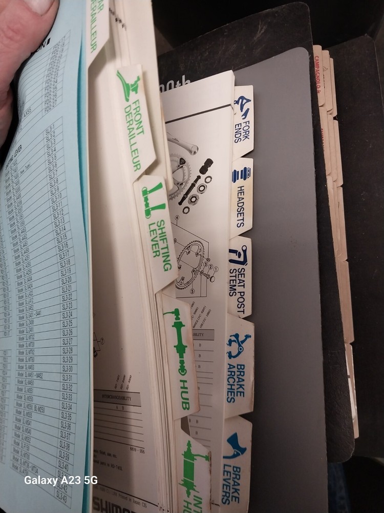 This vintage Shimano parts catalog binder from 1984 is a must-have for any cycling enthusiast. Filled with a variety of parts and components, this catalog is a great resource for those looking to build or repair their own vintage cycling projects. Made in Japan, this catalog showcases the quality and attention to detail that Shimano is known for. With a focus on vintage cycling, this catalog is perfect for those looking to add to their collection or revamp their current ride. The brand, model, and country of manufacture are all listed in the attributes, making it easy to search and identify the perfect part for your needs. Don't miss out on this unique piece of cycling history.