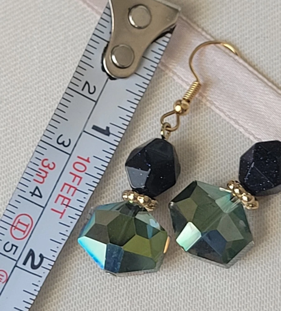 Add a touch of elegance to any occasion with these beautifully crafted Shiny Lady swing earrings. The intricate design features aurora crystal face cut beads in a mesmerizing night blue shade, paired with glass bead accents for a touch of added sparkle. These handmade earrings have a 1.7" length. Perfect for gifting on occasions. The stylish earrings come in a pair and are sure to add a cool and sophisticated touch to any lady's wardrobe. Ship FREE with USPS Ground Advantage