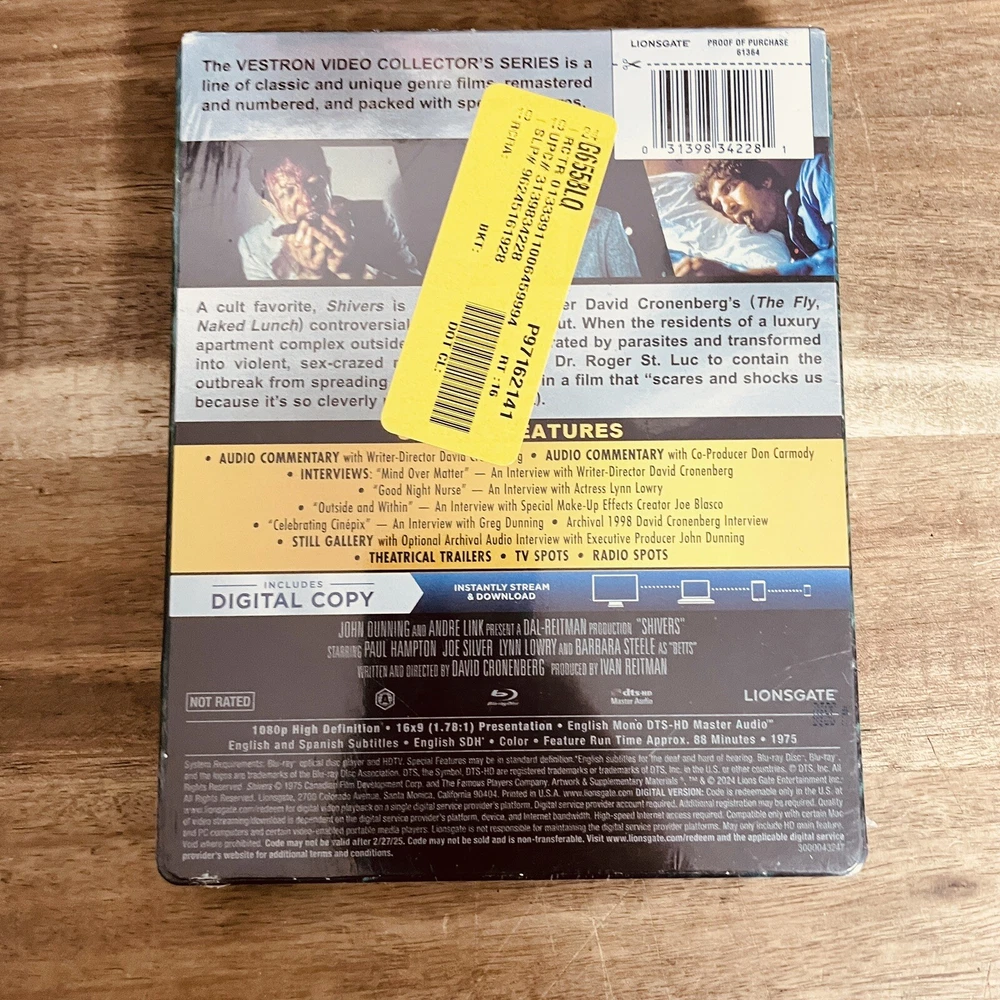 Shivers (1975) Steelbook (Blu-Ray, Digital) SEALED U.S. Exclusive - Cronenberg