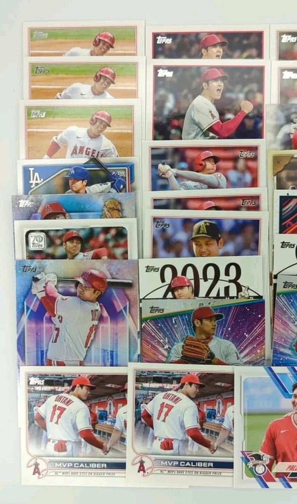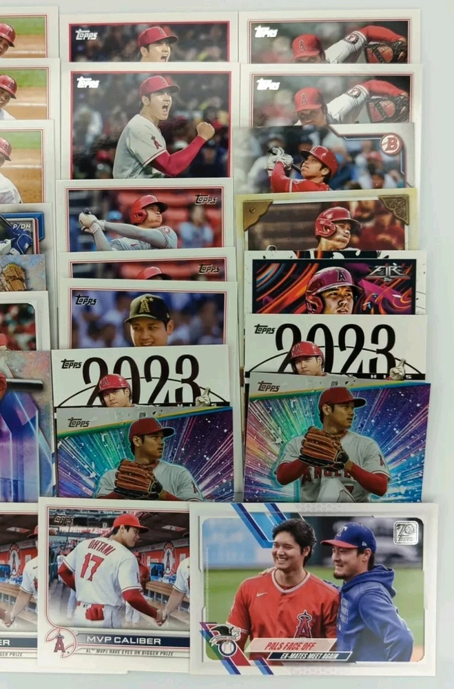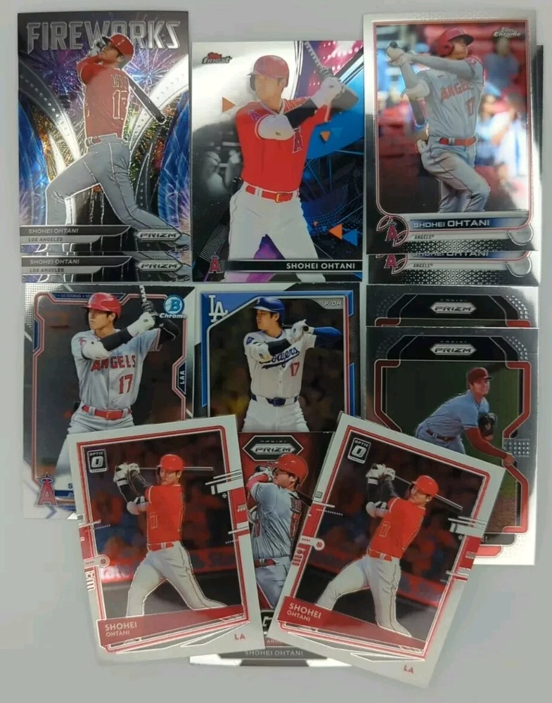 This Shohei Ohtani 36 card lot includes various seasons of baseball, with cards from the Angels and Dodgers. The set features cards from Topps, Prizm, and Optic, and includes inserts for added value. The cards are from the Major League Baseball (MLB) league and were manufactured by Topps in 2023. The lot is perfect for fans of the Los Angeles Dodgers and Los Angeles Angels, and collectors of sports trading cards. With 36 cards in total, this lot is a great addition to any collection. Don't miss out on the chance to own these unique and collectible cards.