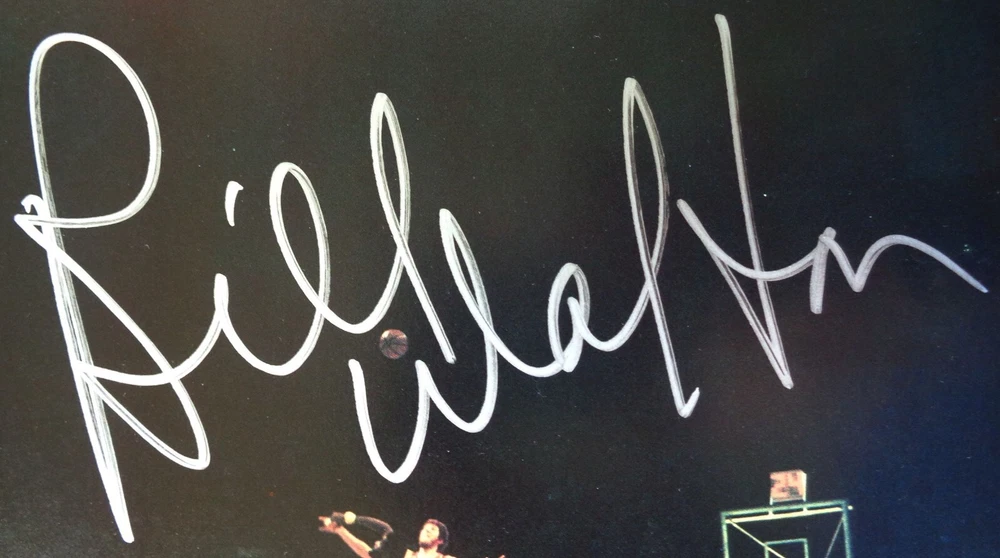 BILL WALTON personally autographed this Portland Blazers magazine page for me. He signed his name using a silver sharpie. Bill is shown at a center court jump ball. Back side of signed page is displayed in the listing too. Upon request, buyer will receive a Certificate of Authenticity (issued by me) detailing signing information. In the early to mid-2000s, I took several Trailblazer yearbooks and Rip City magazines (official Blazers monthly magazine at the time) and carefully removed the pages. Then I've had had many pages signed by various players from that team. Size is approximately 8 3/8” by 11”. It is in great condition for display, at least Mint/Near-Mint. It will be shipped flat with cardboard protection. See my EBAY Store and current listings to save shipping on multiple items. Shipping includes private insurance.