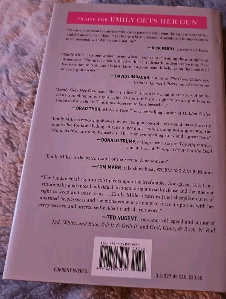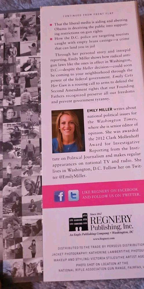 This hardcover book titled "Emily Gets Her Gun: But Obama Wants to Take Yours" is a must-have for collectors and political enthusiasts alike. Written by Emily Miller, this book is a first edition and flat signed by the author, making it a unique addition to any collection. The book has a dust jacket and is 384 pages long, with a length of 9 inches, height of 1.3 inches, and width of 6 inches. The book is published by Regnery Publishing and was published in 2013, with English as the language. It falls under the genres of Antiques & Collectibles and Political Science, with topics covering Firearms & Weapons and Political Ideologies / Conservatism & Liberalism. The book is not inscribed and weighs 21.6 ounces. This book is a great addition for anyone looking to expand their collection and understand the political climate surrounding firearms.
