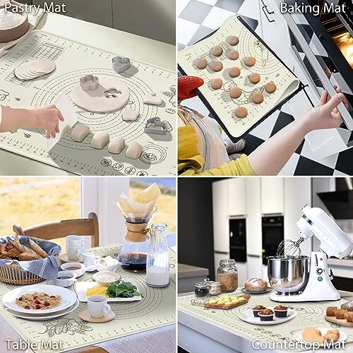 Menu 1. We require immediate payment. 2. We currently accept payment via eBay managed payments only. 3. Once payment is cleared, we will dispatch your shipment within 1-3 business days. Please refer to the "Shipping" tab for more information regarding shipping speed to your destination. Silicone Baking Mat Extra Large Non-stick Baking Mat With High Edge, Food Grade Silicone Dough Rolling Mat For Making Cookies, Macarons, Multipurpose Mat, Countertop Mat, Placemat (32"X24") Product description 100% FOOD GRADE SILICONE BAKING MAT: The food grade silicone mat made of premium silicone. The pastry mat is non-stick and non-slip. It is durable and and will serve you years for baking need. NON-STICKY SURFACE & ANTI-SLIP BOTTOM: Using silicone pastry mat make baking is more easy and convenient.You will enjoy the best NON-STICK baking pad. Even if grease or dough sticks to the surface, pastry mat can be easily cleaned up.This non-slip baking mat can realize complete adhesion,strongly adhesive to the countertop,won't slip and slide around. DOUBLE THICKNESS & DURABLE MAT: The thickness silicone rolling mat is 2 mm and edge hightness is 5 mm. The unique raised edge design can prevent the water from spilling out when you knead the dough, keep your desk clean. EASY TO CLEAN & STORAGE: Simply wash silicone pastry mat under warm soapy water and wipe clean with soft cloth. The surface will not leave residues. Every package has a cute strap, it can be rolled up or folded for easy storage and takes up very little space in drawers or cabinets. MULTIPLE FUNCTIONS SILICONE MAT: This silicone pastry making mat is prefect for preparing all kinds of pie crust, pizza, dough, biscuit, macarons, bread, pastry and fondant. Besides, this baking mats are withstand temperature from -40 to 480°F, which is suitable for surface protector, such as table, placemat, countertop mat, freeze dryer mat. PLEASE MESSAGE US IF YOU HAVE ANY OTHER QUESTIONS, AND MANY THANKS FOR READING ALL OF THIS. Copyright ©#. All Rights Reserved.
