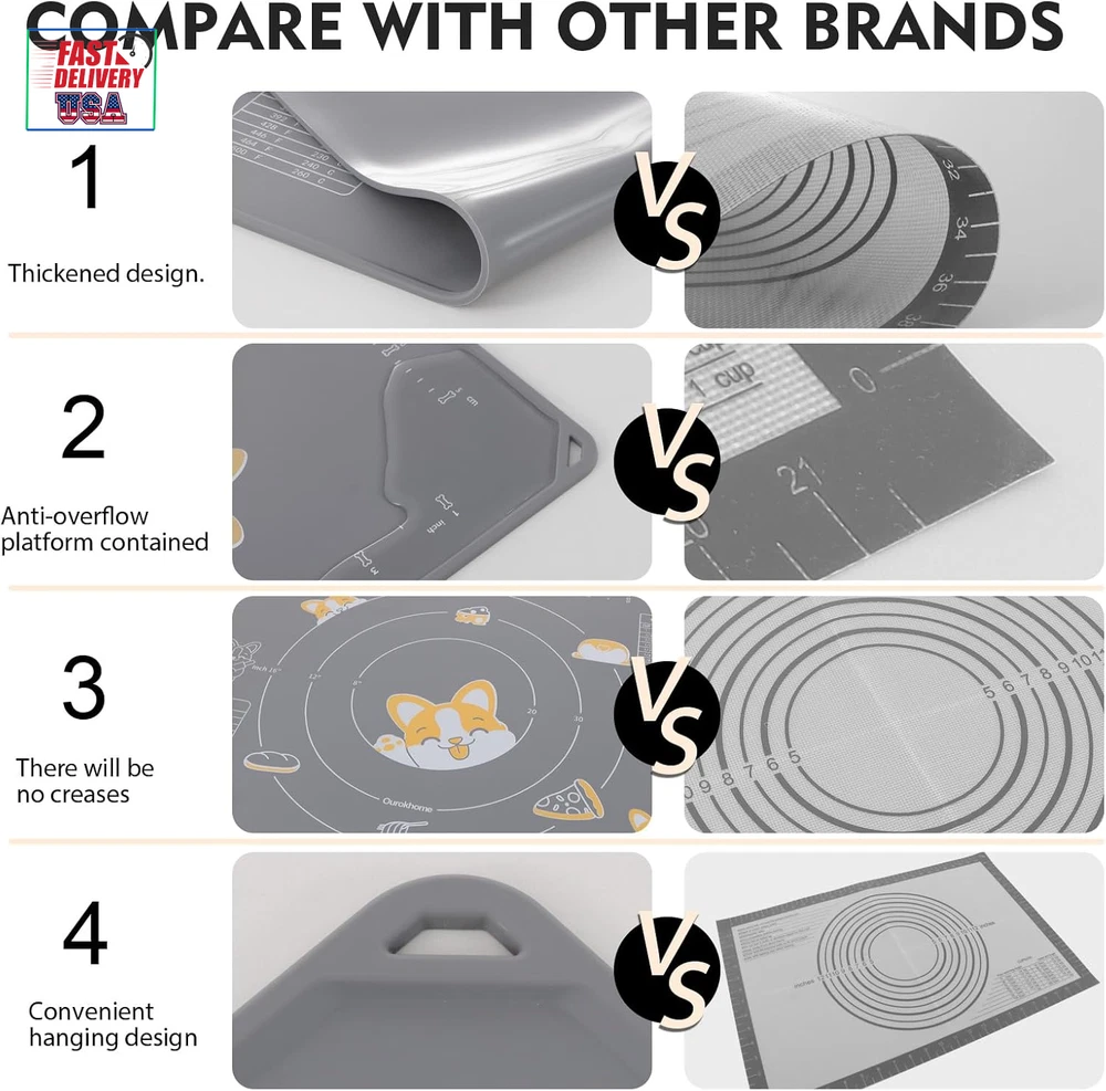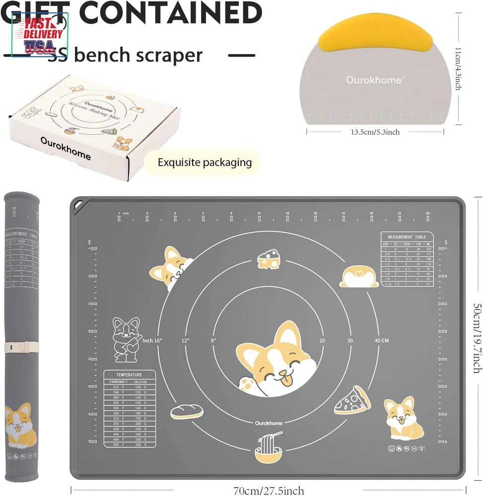 Store New Arrivals Add to Favorite View Feedback Contact Silicone Baking Mat Sheet and Pastry Dough Cutter, 0.5 Inch Thick 28" X 20" BPA Free Silicone Rolling Mat, Non-Stick and Anti-Slip, Dishwasher Safe (Gray) Description Item model number SM003 Color Gray Material Silicone Country of Origin China Is Dishwasher Safe Yes Item Weight 1.63 Pounds Size 28"L x 20"W Product Dimensions 28"L x 20"W Your go-to solution for hassle-free baking: Made from high-quality food-grade soft platinum silicone. Save your countertop from getting messy. Say goodbye to floor all over the flour. Included a bench scraper with scale and conversion table Non-stick silicone baking mat: Our silicone kneading mat sheet will save you from sticky dough, and do not need to use much flour and oil to prevent sticking, even you roll very hydrated dough (sourdough, brioche, etc) Amazing design: The whole pastry mat adopts the design of electrostatic non-slip adsorption, which can be firmly adsorbed on a variety of countertop. Thanks to the raised edge design, water won't spill out Convenient measurement: We use high-temperature screen printing technique which is clear and avoids falling off. The dimensions and the concentric circles allow you to make uniform-size dough. 2 conversion tables for different recipes easy Easy to clean and store: The silicone rolling mat is flexible so it can be folded into cupboard and won't cause permanent crease. Hang it on a hook or roll it up with the lockable strap. Withstand high temperature. Dishwasher safe Product Description The video showcases the product in use. The video guides you through product setup. The video compares multiple products. The video shows the product being unpacked. Inches and centimeters measurement. Meet the size requirement of your different recipes, no conversion is required. The printings are very clear and firm. High-temperature screen printing technique makes the printings firm and never fall off till the end Thickened edges prevent food from spilling out The unique raised edge will prevent water and flour from spilling out, keep your desk clean. Hanging hole design It can be folded without creasing, or roll it up with lockable strap or hang from a kitchen hook. High-quality food grade soft platinum silicone High temperature, aging resistance, no deformation and long service life. 1 Two units of measurement 2 Clear printing 3 Raised edge design 4 Convenient to store 5 Elastic won't deformation 1 White 2 Grey Click to choose other products from Ourokhome Add to Cart Add to Cart Add to Cart Add to Cart Add to Cart Customer Reviews 4.5 out of 5 stars 20,333 4.5 out of 5 stars 980 4.5 out of 5 stars 8,873 4.3 out of 5 stars 5,854 4.6 out of 5 stars 214 Price $32.99 $ 32 . 99 $25.99 $ 25 . 99 $12.99 $ 12 . 99 $20.99 $ 20 . 99 $29.99 $ 29 . 99 Material Plastic and SS Plastic Plastic and SS Plastic and SS 304 stainless steel Easy to use ✔ ✔ ✔ ✔ ✔ Easy Clean ✔ ✔ ✔ ✔ ✔ Exquisite Packaging ✔ ✔ ✔ ✔ ✔ Suitable for gifts ✔ ✔ ✔ ✔ ✔ ABOUT US We offer the best prices around on high quality products. Our E-store includes media such as books, movies, music and games while offering electronics, toys, sporting apparel, clothing, tools, general home, garden items and more. SHIPPING We are always working hard to ensure your package arrives as soon as possible. Please understand that some factors like weather, high postal traffic, and the performance of shipping companies are outside of our control. We offer free shipping to the lower 48 states and ship within 2 business days of payment, usually sooner. We do not accept P.O. Boxes. Please provide a physical address. For shipping outside of the continental USA, we only use eBay's Global Shipping Program.The item is shipped to KY and then sent to the rest of the world. International customers are responsible for all duties and taxes. Continue to check out in order to calculate costs for shipping the item to your country. Messages regarding eBay's Global Shipping Program MUST be directed at eBay EXCLUSIVELY. RETURNS We offer a 30-Day Return Policy on items which you are not completely satisfied with. You have the option for a full-refund or an exchange of the item. No returns are available on items shipped outside of the USA. PAYMENT We accept PayPal. CONTACT US This page content is yet to come Please ad us to your favorite seller and visit again later Thank You CUSTOMER SATISFACTION We try our very best to make sure every customer is completely satisfied. If there's a problem, message us! We're happy to help. WE ACCEPT Copyright © 2021 AutoDS. | All Rights Reserved