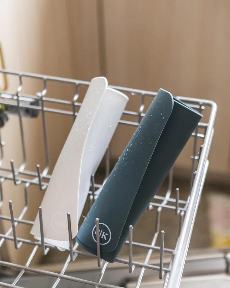 INCLUDES two quarter-sheet food-grade silicone oven-safe baking mats, packaged in a cotton, reusable produce bag, good for storage and gift-giving NON-STICK and NON-SKID good for kneading dough, pastries, roasting vegetables, baking cookies and more, the silicone is non-stick, no need for grease, spray, parchment paper, or aluminum foil NON-TOXIC and BPA FREE Each baking mat is made of food-grade silicone meeting FDA and European LFGB standards EASY TO CLEAN Each set is dishwasher safe and easy to clean with soap and water EASY TO USE Each baking mat is microwave, dishwasher, and oven safe