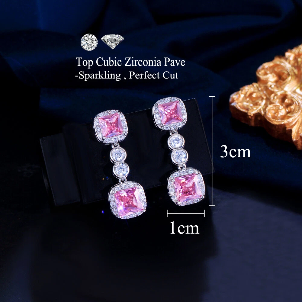Silver Plated Cubic Zirconia Pink Square Dangle Drop Earrings Cute Women Jewelry Specifications : Condition: New Material: Cubic Zirconia Earring Size : 3*1 cm Features: 1. CZ Stone Material - Top Level Cubic Zirconia. Excellent Cut Simulated Diamond. Enjoy the Dazzling Sparkle from Cubic Zirconia Dangle Drop Earrings. 2. These Unique Dangling Drop Earrings are Suitable for Almost all of Sensitive Ears. These are the Top Cubic Zirconia Women Earrings for Daily Wear. 3. Suitable for Various Occasions: Ideal for Wedding, Prom, Pageant, Parties, Homecoming, Black Tie Formal Affairs, Holidays , Valentine's Day, Mother's Day, Christmas, Anniversary, Graduation, Birthday and Special Occasions. 4. a Perfect Jewelry Gift for Women , Bride , Bridesmaid , Mother ,Wife , Lover , Fiancee , Girl Friend . Package Includes: 1 Pair of Earrings Payment Delivery details Terms of sales About us Contact us Payment 1. We only accept payment by Paypal 2. We request you pay within 5 days of the first auction close. Failure to do so may cause our automated dispute system to file disputes for unpaid items Delivery details We only send items to the registered eBay address.Items will be shipped within 2 business days from the date payment is received (not include public holiday and weekend) . As per eBay regulations, import duties, taxes, and customs charges are the buyer's responsibility. Please check with your country's customs office to determine what these additional costs may be prior to bidding or buying. Terms of sales After-Sale Please contact us to request a return/replace/refund authorization.It will be best if you use ebay message to contact me. 1, Return and replacement request is available only the requests within 30 days after parcel received. 2, Returning the item as the same condition as received. Situation and solution Defectives ---Please contact us and provide a photo of the defective part. After situation confirmed,we will offer you refund/return/replacement according to the situation Not as Described ---Please contact us and provide a photo of the wrong part. After situation confirmed,we will offer you refund/return/replacement according to the situation Not Received ---Please undersatnding shipping on the way was out of our control ,because of the busy shipping season,holidays,bad weather or force majeure etc. It may be delay for days. But if it took too much time and not deliveried, Please message me, I will offer you solution for it. About us Working time: Chinese time(Eastern eight zones):Monday to Friday ,9:00 am to 6:00 pm. We do not work on chinese legal holiday. Message reply: We will reply all messages within 24 hours of business time. Contact us Please contact us via ebay message, it was the best way for both you and us to solve problems. Any questions or anything you need, please feel free to contact us.