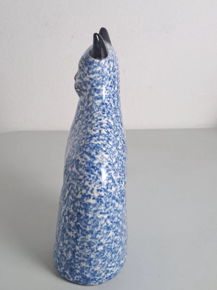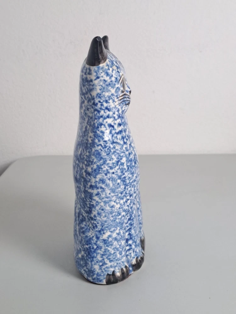Sitting Cat Glazed Ceramic Porcelain Blue/ White 8.5" Tall Statue Figure Decor is in Good Pre-Owned Condition. Heavier Weight Piece. Nice!!