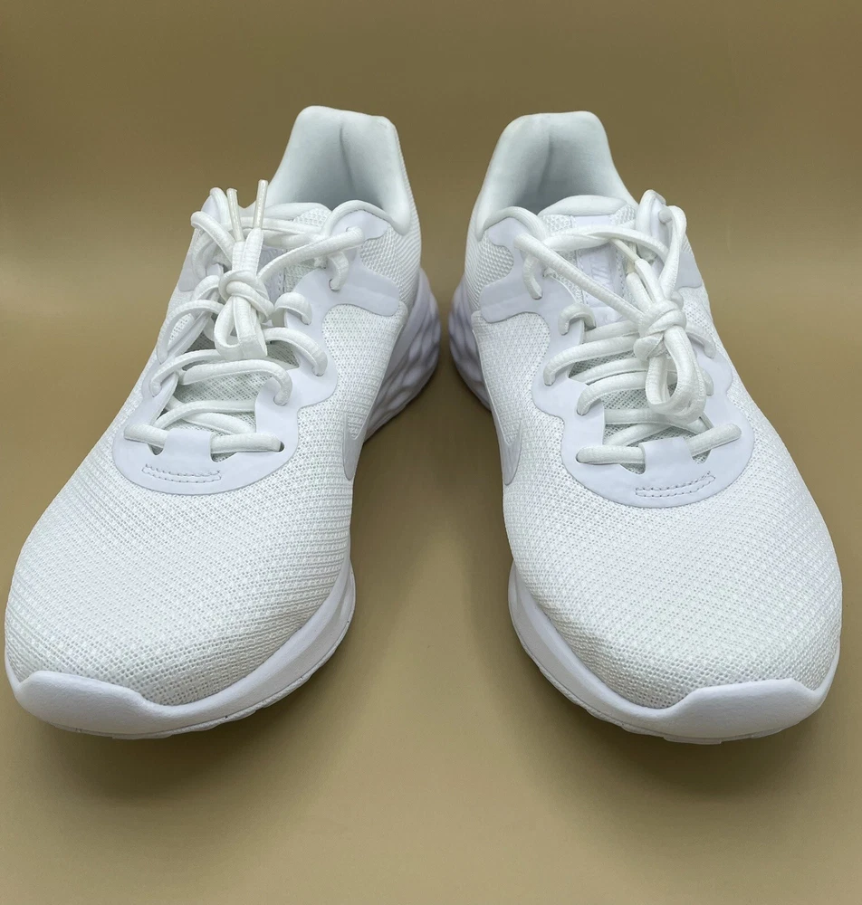 Elevate your running game with these Nike Revolution 6 NN sneakers. The shoes come in a classic white colorway with accents of the Nike logo. They feature a lace-up closure for a secure fit and a low-top shoe shaft style. These shoes are perfect for running and jogging, with a cushioned, comfortable, and breathable design. The rubber outsole provides traction and durability, while the foam insole adds extra comfort. The Nike Revolution 6 NN sneakers are ideal for women who are looking for a stylish and functional shoe that can be worn for activewear, casual wear, and workwear.