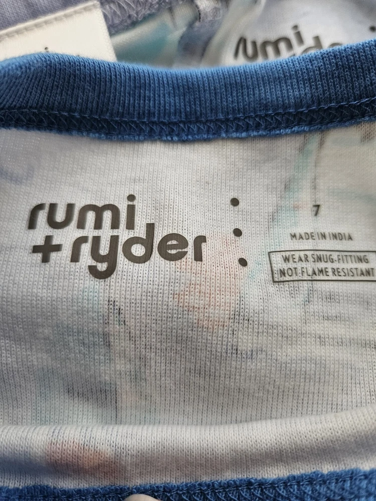 Brand: rumi+ryder Size: 7 Color: Light blue with sail boat print Material: 100%cotton. The top is short sleeved, and the bottom is pants. Non-smoking home.