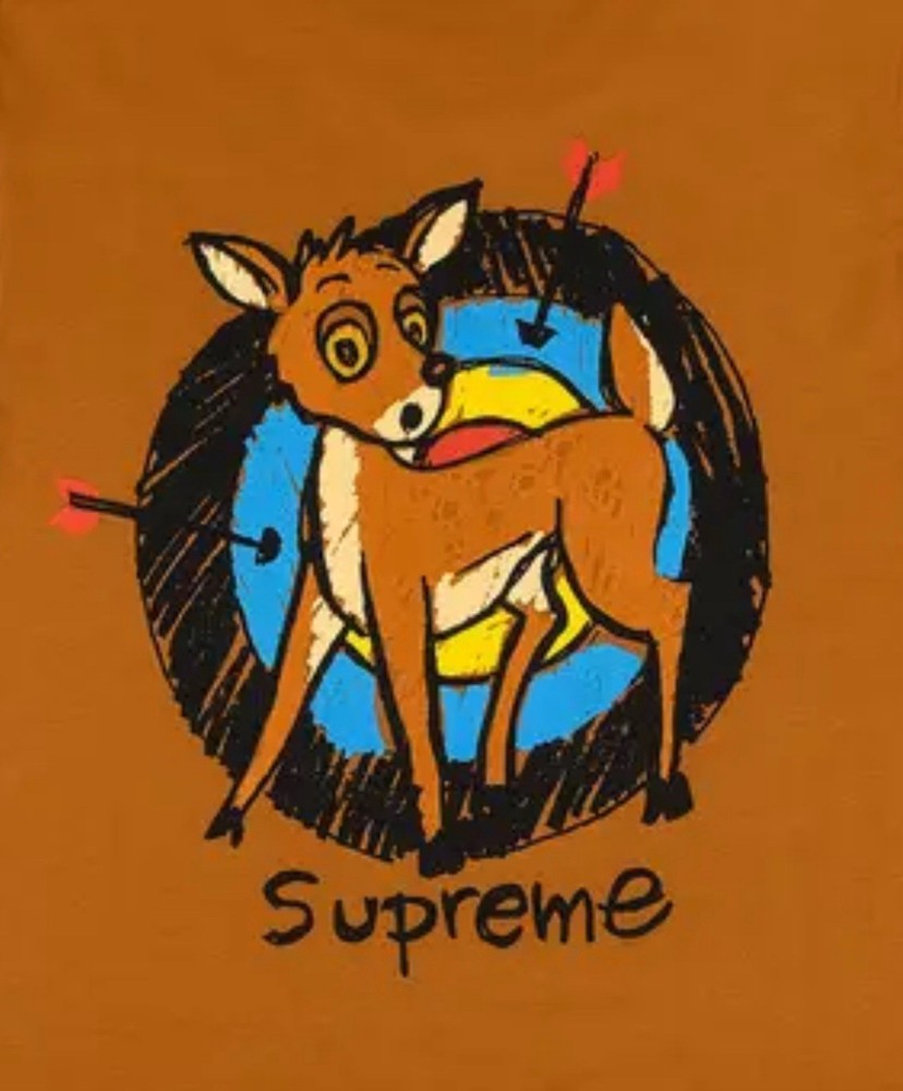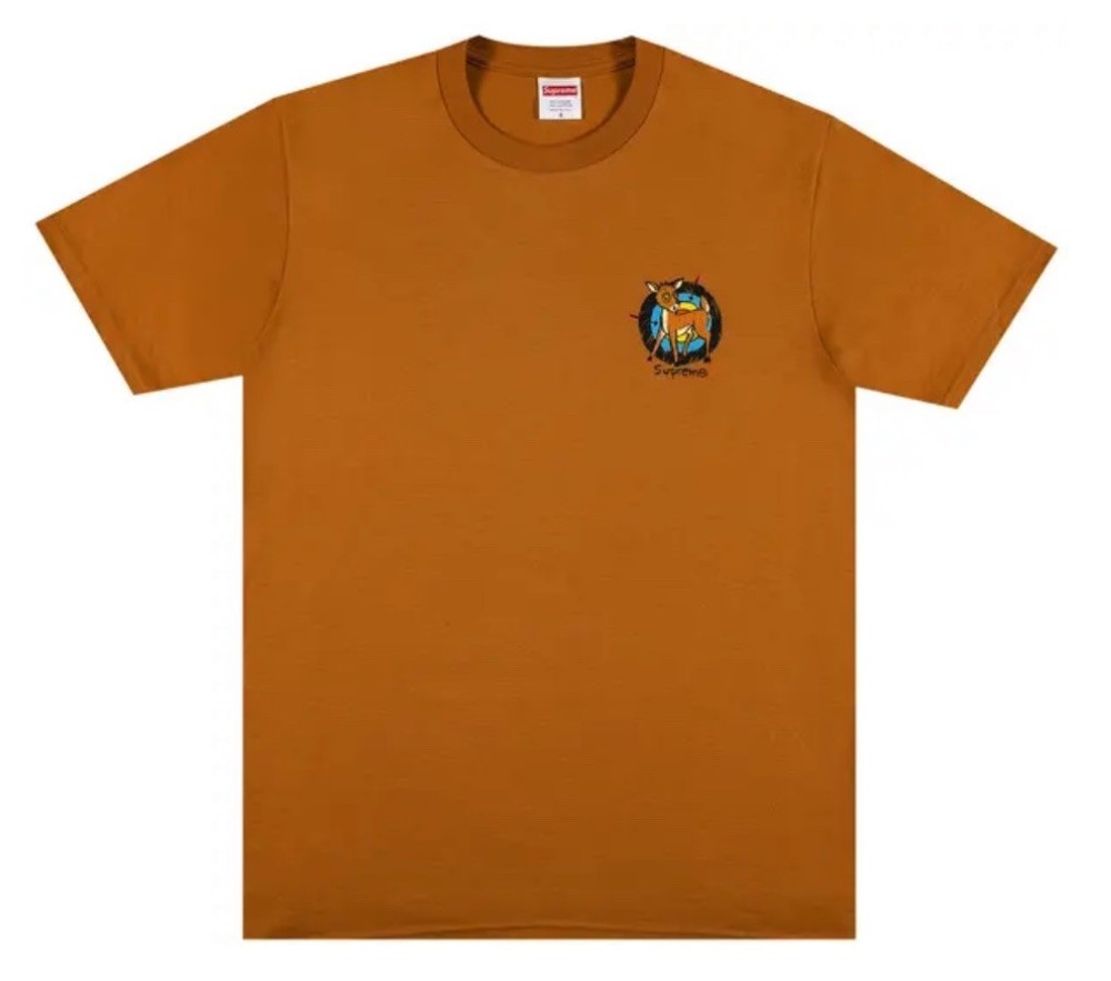 The product is a men's size medium Supreme Deer Tee in a burnt orange color. It is a regular fit t-shirt featuring the iconic Supreme brand logo. Perfect for casual wear, this tee offers a comfortable and stylish option for everyday outfits.