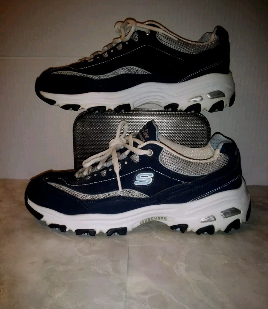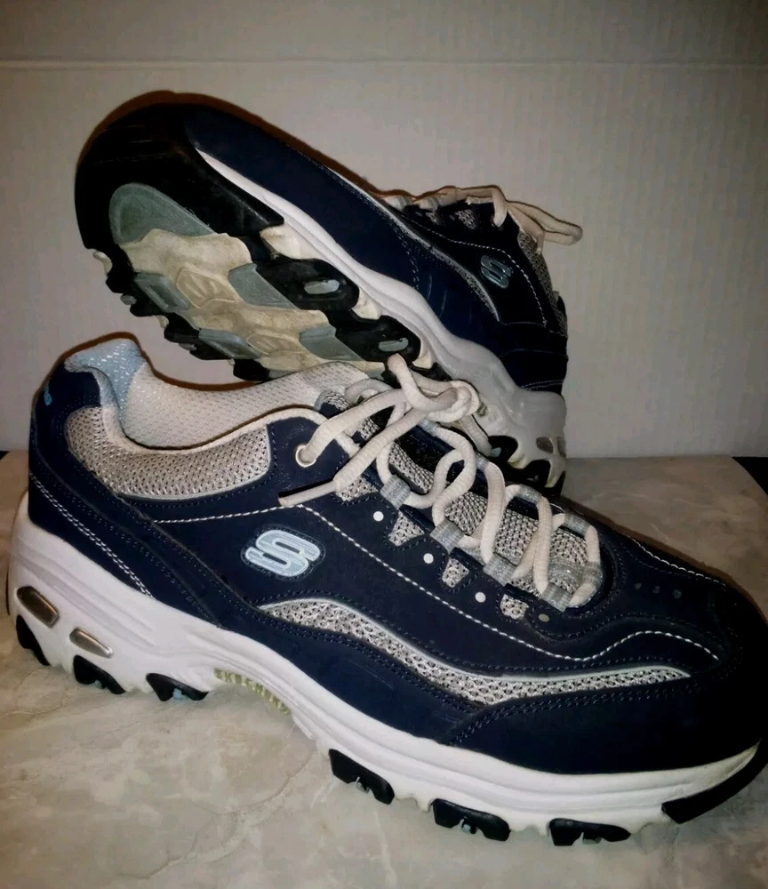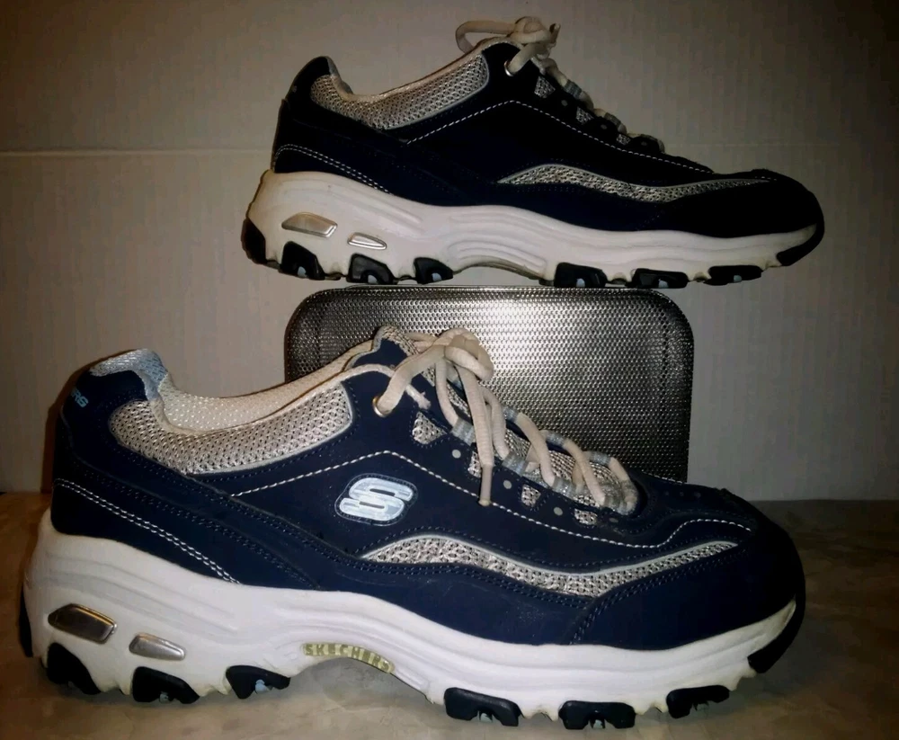 Elevate your sneaker game with these navy blue Skechers D'Lites Life Saver Memory Foam sneakers. The lace-up closure provides a comfortable fit while the rubber outsole offers durable wear. The blended fabric lining and insole ensure breathability and comfort, perfect for all-season wear. These low-top sneakers are ideal for a variety of occasions, from activewear to casual. The solid pattern and subtle logo accents add a touch of style to these functional shoes. With a UK shoe size of 5.5 and EU shoe size of 38.5, these sneakers are a great fit for women's US shoe size 8.5. The Skechers D'Lites Life Saver Memory Foam sneakers are a versatile addition to any wardrobe, suitable for gym training, running, jogging, and more.