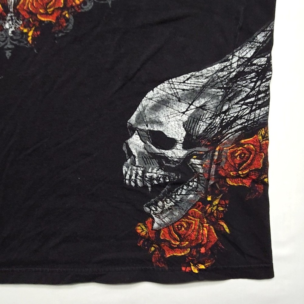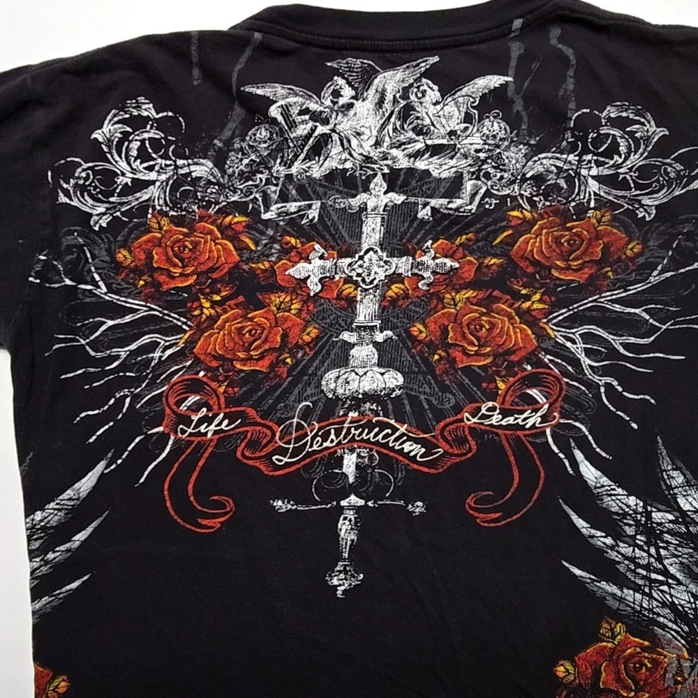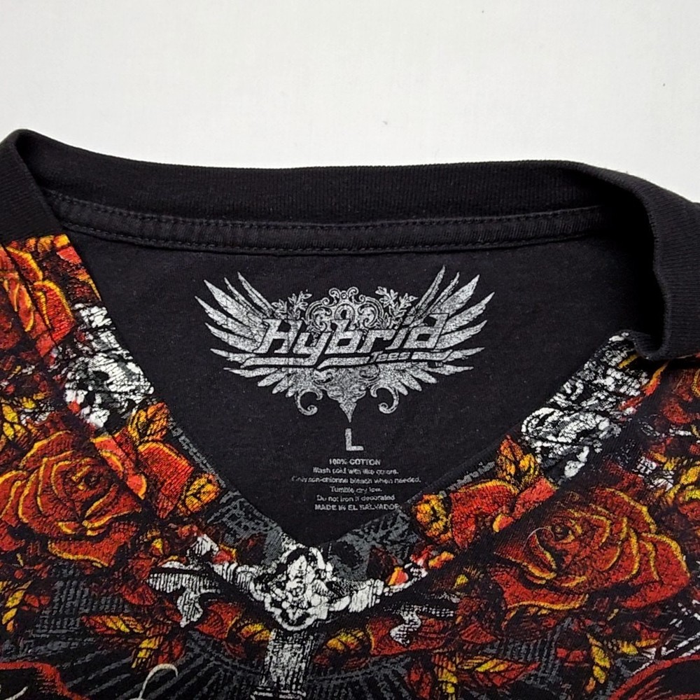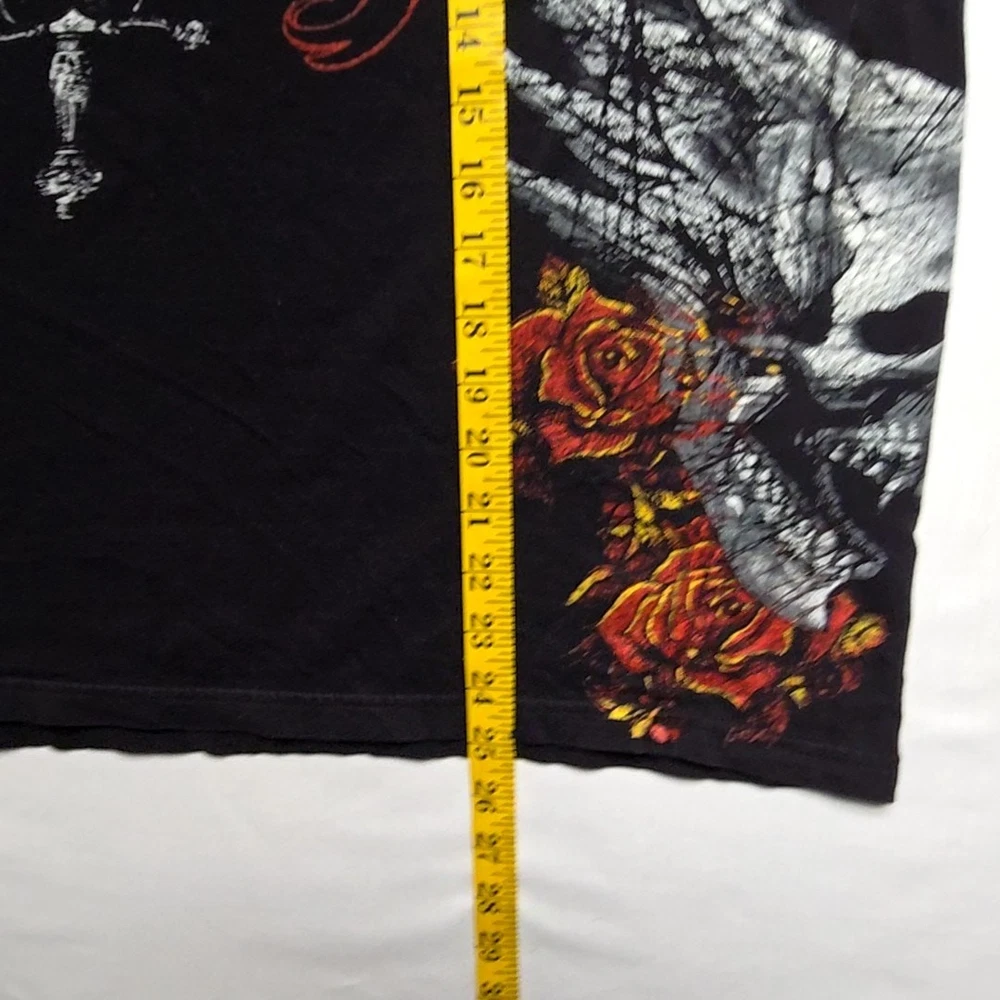 Skull Wings Gothic Graphic Tee Red Tattoo Affliction Style Y2K Large Shirt Brand: Hyperion Size: Large Color: Black with graphic print Material: 100% Cotton Fit: Regular Condition: No visible holes or stains. Review photos for details. Offers & Bundles: I'm open to offers and can bundle items together for you. Shipping: All orders are shipped within the same or next business day. Inquiries & Issues: If you have any questions or issues, feel free to reach out. I post over 40 new items daily. Measurements: - Chest: 22.5 in - Length: 25.5 in