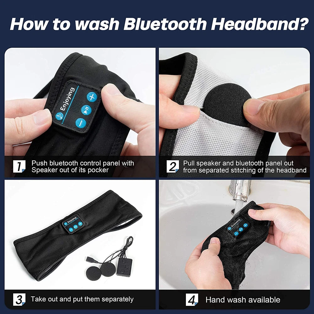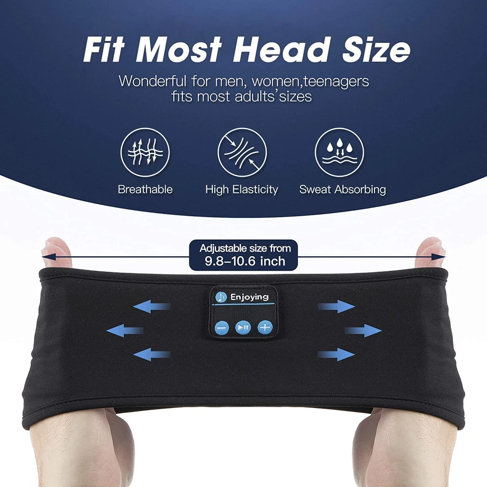 【Sleep Headphones & Sports Headband 2 in 1】Perytong Bluetooth headband allows you to listen to music without having to wear additional headphones, and protect you from being disturbed by your mess hair and sweat. Built-in microphone to let you won't miss any callings. Wireless sleep earbuds perfectly suitable for gym, workout, running, yoga, sports, other outdoor activities and take a nap indoors or in the office as a sleep mask with bluetooth headphones. 【Thin Speakers Perfect Headphones for Sleeping】Headband headphones bring you peaceful sleep all night, built-in 2 ultra-thin speakers, devices control module is in the middle of sleep headband, no press the ears. Noise cancelling headphones are comfortable enough to wear while lying down or sleeping on your side. The sleeping bluetooth headphones match for devices that support bluetooth 5.2. Sleep earphones compatible with Android and ios or any other smartphones,Tablets. 【Longer Service Time and Premium Audio】Sleeping headphones bluetooth 5.2 HiFi advanced sound technology wireless bluetooth headphones offer an upgraded rechargeable lithium battery, charge about 2-2.5 hours provide more than 10 hours of playing time. Quality chipsets ensure clear sound and lossless music even during sports. Built-in microphone and volume control buttons which enable users to answer hands-free phone calls and handle previous/next song without having to use your phone. 【Comfortable, Breathable and Washable Headband】Sports headphones headband are extremely soft and lightweight, which is made of durable braided cord and offers a breathable mesh lining, will easily stretch to fit all head sizes, also incredibly soft. The bluetooth headband headphones are washable, simply remove the speakers and clean the band. Useful for wearing an eye mask for sleeping so the light-blocking feature is helpful. The headband wide range is 9.8-10.6 inches. 【Satisfaction Sercive Guarantee】We provide sleep headphones bluetooth hassle-free service and offer friendly, easy-to-reach support (just contact us if you have any questions). Take bluetooth headband tech gadgets creates you a private space, special ear muffs for sleeping not only make your sleep better but also enjoy your music time. Such a great bluetooth headband for men women is a unique gift idea. Product Description Perytong 2 in 1 Wireless Sleep Headphones Headband Allows You Enjoy High Quality Music Anytime Anywhere No painful sleep earbuds or awkward headphones, they are perfect for: When going to sleep or sleeping next to a snorer For people suffering in various degrees from excessive stress or worry For listening to music and Audio Book in bed at night while your partner sleeps For listening to music while traveling or commuting While working out, stationary biking, walking or jogging LONG PLAY TIME Built-in polymer lithium battery. Gives you up to 8-10 hours talk time/audio play time, enough to power your workouts with music for a week,or sleeping for a whole night. Best Sleep Headsets for Side Sleeper Devices control module is in the middle of speakers, won’t hurt the ears, which is very comfortable for side sleepers sleeping. The ultra-thin flat headphone speakers are comfortable enough to wear while lying down or sleeping on your side. They block out ambient noise without using earplugs that are painful & fall out. Ultra-Thin and Adjustable Speakers Latest V5.1 wireless tech can pair your any Smartphones iPad Tablets easily. Both speakers are Ultra-thin and can be adjusted according to the size of your head, get rid of the wire bonds, but without compromising sound quality. Only you and music, pure and free. Easy Control Module Bluetooth connections and control are quick and easy. Clear vocals, clean bass and crisp percussion. Discover sound quality that brings out the best in your music—including subtle details you may never have noticed.Step 1: Push right speaker to the place of bluetooth control Washable Bluetooth Headband Step 1: Push the control panel out of its pocket. Step 2: Continue to ease the control panel towards the small opening at the rear of the headband. Step 3: Repeat Step 1 for the two speaker discs located on both side of the Headband. Step 4: Hand wash or machine wash the headband. Fit Most Head Sizes and Ages The bluetooth sports headband have high elasticity, it can fit most head sizes and provide a comfortable experience. With quicky dry material, simply put it on and the headband will keep your sweat out of your eyes and stay in place without slipping.