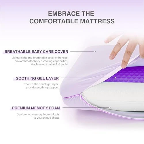 Return Policy Fast Delivery Trusted seller Sleep Memory Foam Pillow for Back Stomach and Side Sleepers, Pillow with Two-Sided Reversible Cover for All-Season Comfort, Neck Support Pillow with Washable Removable Cover, Purple Product Description 【REVERSIBLE DESIGN】This gel pillow features cooling fabric on one side for an unrivaled cooling sensation upon contact, and comfortable memory foam on the other side for strong support. This dual-sided design ensures seamless comfort throughout the year. 【SIZE DIMENSIONS】Perfect fit for sleep and offers plenty of room to rest your head comfortably when it's time for bed.Size dimensions:15x23x5 inches. 【GOOD SUPPORT FOR YOU】Experience unparalleled support and comfort every night with our pillow, designed to perfectly cradle your head and neck for a restful and rejuvenating sleep. 【PREMIUM MEMORY FOAM】: Signature material effortlessly adapts to your unique shape for superior head, neck, and shoulder support so you can wake up feeling refreshed. 【BREATHABLE EASY CARE COVER】: Our pillow is protected by a smooth and comfortable cover that can be removed and machine washed as needed for easy cleaning. Shipping Returns Payment Shipping Shipping is FREE to all addresses other than APO/PO boxes in the lower 48 states. All our stock ships from US-based warehouses. Shipped via USPS or UPS (depending on location and package weight) Unless stated otherwise, all orders will ship within 24-72 hours of your payment being processed. Check our feedback to see the great reviews of FAST shipping we offer. Returns Seller does not accept returns Payment We currently accept payment via eBay managed payments only. Once payment is cleared, we will dispatch your shipment within 1-3 business days. Please refer to the "Shipping" tab for more information regarding shipping speed to your destination.