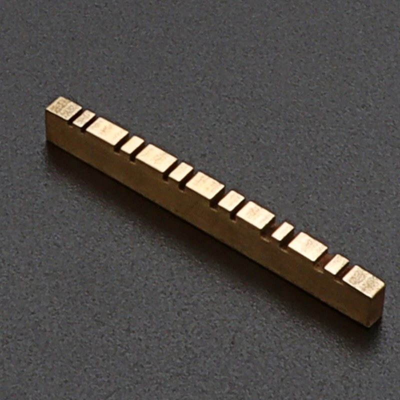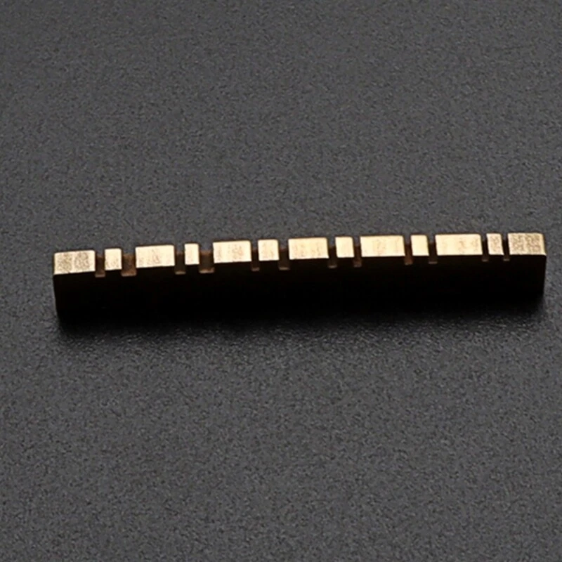 Slotted Guitar Brass Nut Up-Saddle Electric Guitar 12 String Pre-Slotted Nut Features: Made from premium brass for enhanced tone, sound and volume. The replacement for your existing bridge saddles and Pre-slotted for quick installation. Designed for modern and vintage electric guitars. Package includes: 1x Brass Nut. Specifications: Brass Size: As Shown in the Picture Package Includes: 1x Brass Nut note: Please allow 1-2cm errors due to manual measurement, make sure that you do not mind before you order. Due to the difference between different monitors, the picture may not reflect the actual color of the item.