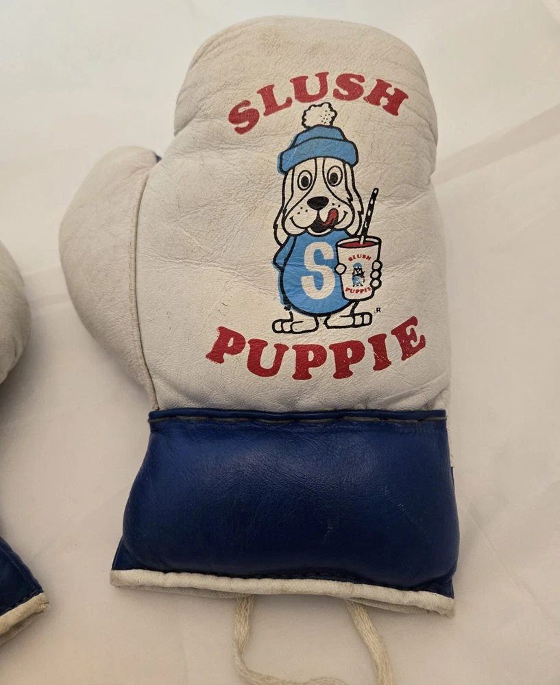 Rare set of Vintage Slush Puppie boxing gloves featuring the mascot. Children's size. They look to be a promotional item from the 70's or 80's. Please look up photos for condition. Ships from Ontario Canada. From a smoke free home.