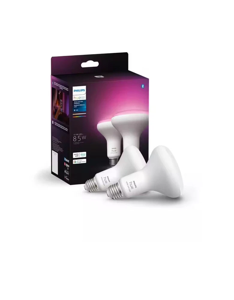 This Philips Hue smart LED light bulb is a must-have for any smart home. With Bluetooth compatibility and a BR30 shape code, this multicolor bulb can be easily controlled with your smartphone. It boasts an impressive 1200 lumens and a lifespan of up to 24,999 hours, making it both energy-efficient and durable. The bulb's color finish adds a touch of style to any room, while its smart home protocol allows for easy customization and control. Whether you're looking to create a cozy atmosphere or brighten up a dark space, this Philips smart LED bulb has got you covered. Philips Hue 85-Watt Equivalent BR30 Smart LED Color Changing Light Bulb with Bluetooth (2-Pack)