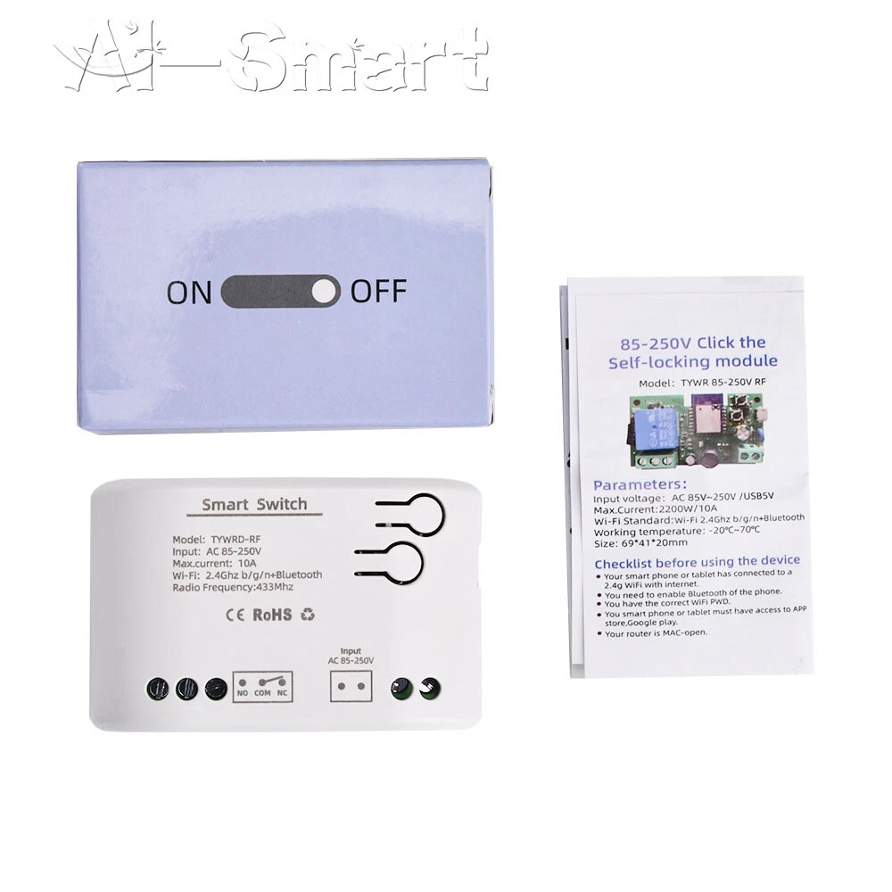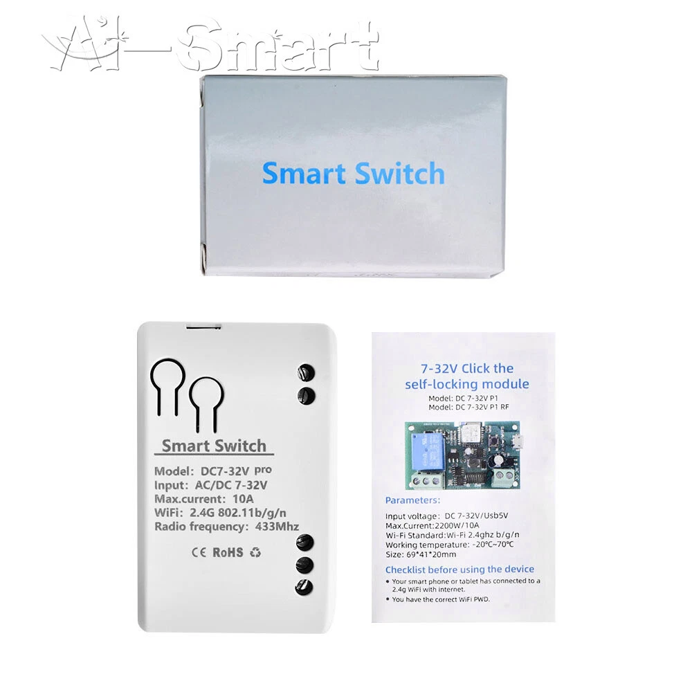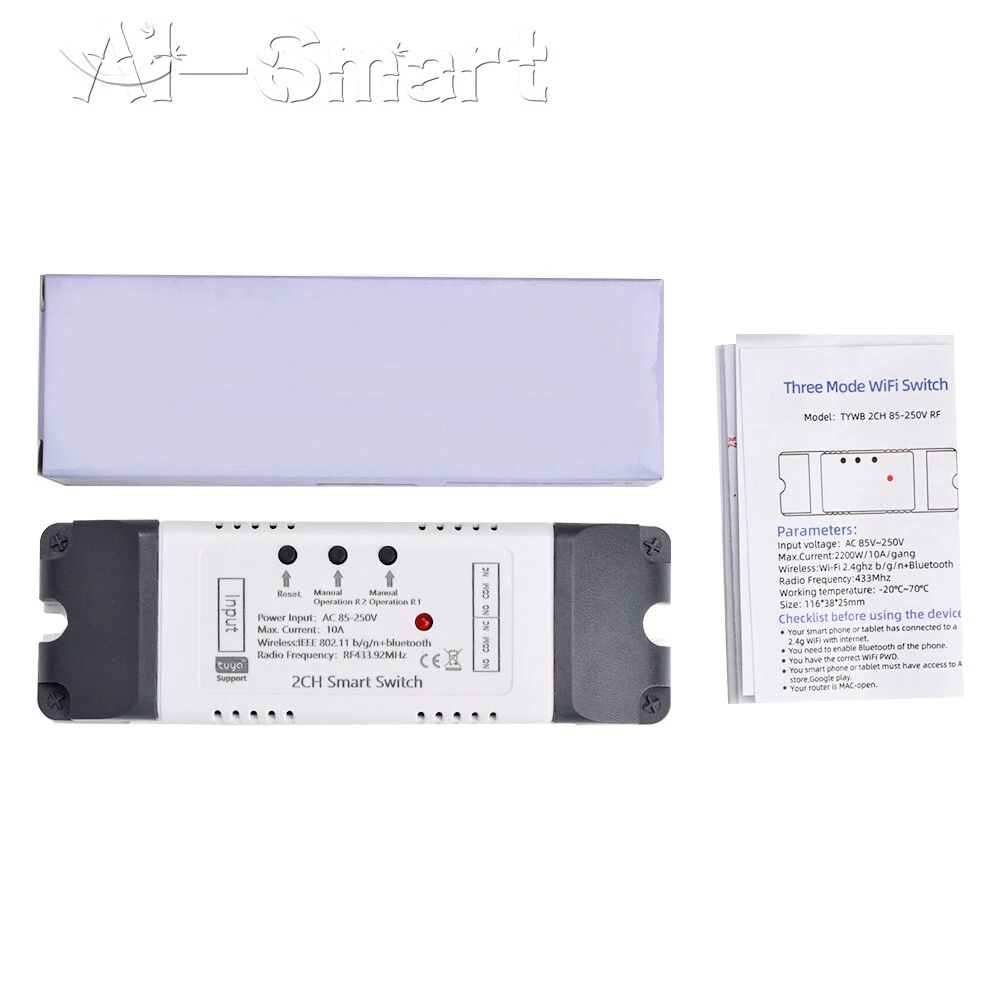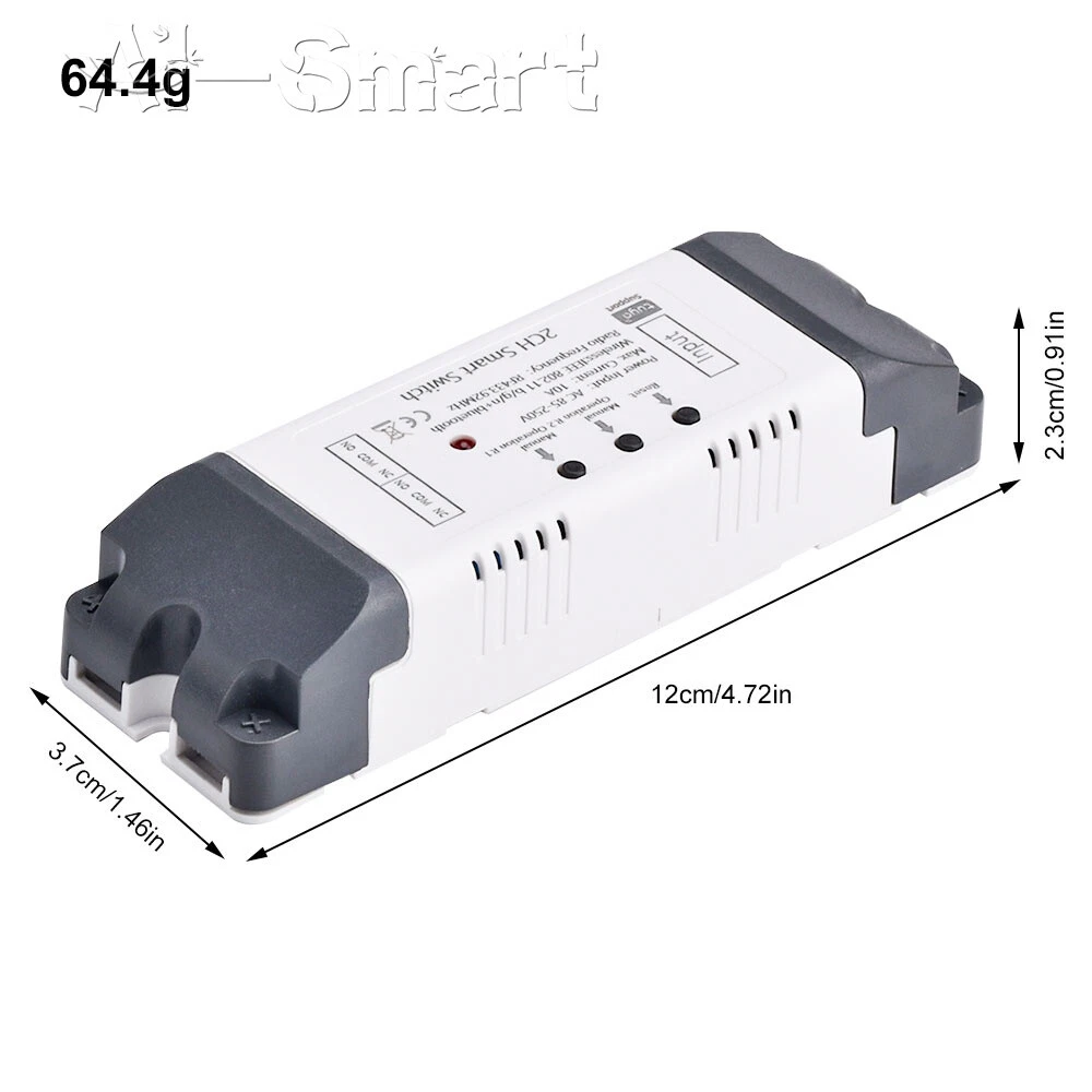 Smart Remote Control Wireless WiFi Switch Relay Module 1/2/4CH DC7-32V/AC85-250V Features: App support: Free iOS and Android mobile app Smart Life / Tuya Smart. Synchronised status: Real-time device status provided to the app. Remote on/off: remote on/off of 4 electronic devices from anywhere. RF remote control: Indoor 433MHz RF remote control on/off, only 433MHz learning code is supported Some 433 remotes may not be supported. Independent control: control each gang individually in the APP Doodle. Supports remote turn on or off of connected appliances such as lights, kettles, rice cookers, electric curtains etc. DIN rail mounting: ideal for industrial control. Voice control: perfect compatibility with Google Nest, IFTTT... Shared control: control your smart home with your family. Product parameters: Input voltage: DC 7V~32V/AC85-250V (optional) Micro USB: 5V Maximum current: 2000W /10A Wireless Standard:Wi-Fi 2.4GHz b/g/n RF: 433MHz Operating temperature: -20°C~70°C Please check the following before using the device: Your smartphone or tablet is connected to a 2.4G WIFI with internet access (5G WIFI is not supported at this time) The phone is Bluetooth enabled Your Android phone or tablet must be version 4.0 or above With an Apple phone or IPad you must be able to access the APP shop and download the APP If your wireless router is set up with MAC address filtering, please enter the background of the router to turn off the MAC over speed function first Packing list: 1*Wifi Remote Control Module Shipping Payment Return Policy Feedback Shipping 1,We will arrange shipping for you within 24 Hours after payment cleared except the holidays. 2,We only ship to the confirmed address provided by PayPal. Before you pay, please make sure your address in PayPal matches the address you would like us to ship to. If not, please let us know before we sent you the package, or we will not be responsible for any loss. hope you could understand. 3,we will ship out the order in 1-2 business days after payment cleared .Since it is international shipping ,delivery time is about 15--28 business days to arrive to most countries. 4,We ship items to Worldwide. Thank you! Payment We accept PayPal payment ONLY. If you do not have Paypal account, please registered with (http://www.paypal.com) Payment must be received within 5 days after auctions ended. Please do not bid if you are not intending to buy. Unpaid dispute will be filed to ebay for the non payable bidders. Return Policy We are not responsible for custom duty or import tax. We will leave POSITIVE FEEDBACK after receiving the payment. Please contact us if your are not satisfied with the item after receive it. We could offer refund, and refund request is available only requests within a week after parcel received & returning the item as the same condition as received. We offer 100% refund if the item is broken before arrival , all you need to do is sending us the clear pictures to show it is broken. Defective situation must be noticed within 7 days after delivery. All emails will be answered within 1 business day. If you do not receive our reply, please kindly re-sent your email,and we will reply to you as soon as possible. All items sold by us are being described to the best of our abilities, as accurate as possible, and with utmost conscientiousness on our part.However, to avoid any potential oversights, I respectfully request your assistance in helping us to make this a mutually satisfactory transaction by Thoroughly reviewing item description and photos, and asking all questions Prior To Bidding. Please Note that size and color representation are subject to manufacturing variance and may not be exact. Also note that monitor settings may vary from computer to computer and may distort actual colors. Please read these terms thoroughly before placing your bid. Feedback We will automatically leave a positive feedback to everyone who has complete the transaction and leave us positive feedback. Please do not forget to give us Five Stars on all of the Detailed Seller Ratings. Thanks! In the unlikely event you are not satisfied with the transaction, please contact us before you sumbit your evaluation. We believe that everything could be solved by communication. 1.in order to provide you the best service*****,please treat the transaction fairly.*feedback is simply what we pursue. 2.Please Do contact us first to get a better solution before you would leave a *neutral or *negative feedback 3.We strive for 5-star service by stating upfront our policies, our shipping rate& our shipping frequency. if you were pleased with this transaction, please respond with all 5 stars! if you are not pleased, simply let me know via e-mial rather than leave low score, and I'll work to make it that way 4.Please email me through 'MY MESSAGES' or "Ask Seller Questions" if you have any question about our listing or your purchase