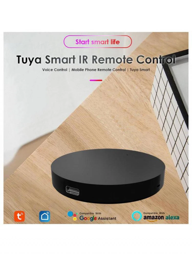 Smart Wifi IR Universal Remote Control with Tuya and Smart Life Home Remote for Air Conditioner TV DVD via Alexa Google home Description: With this Universal IR Remote Control, you may use your smart phone to control home appliances, such as STB(Set-Top-Box), TV Box, TV, Air Conditioner, Fan, DVD, etc. Compatible with most of brands, for details, please refer to the supported brand list in App. Besides, it has LEARNING FUNCTON, allows you to copy the key function of original remote control to App. Note: Not compatible with the home appliances which use RF or BLUETOOTH remote control. 【1.Massive IR Code Database】 Support 4000 brands, 50000 IR Code on cloud, supported devices library is constantly being updated by the cloud. 【2. App Remote Control】 Remote Control your home appliances by using “Tuya Smart” App in your smart phone anywhere anytime. For example: Switch on home A/C in advance, enjoying the comfortable temperature once you get home. 【3. Easy to install and add to app】 Once you plug the cable line into the device, the device starts to start, and then select the app's "auto scan" function to find device. The whole process takes only a few minutes. 【4. Voice Control】 By connecting Intelligent speaker, such as Amazon Alexa, Google Home, you are able to control your home appliances by voice. For example: Alexa, turn on TV; OK Google, set air conditioning temperature to 25 degrees. 【5. Scenario and Automation in App】 A scenario consists of 1 or more actions. By creating an “Scenario”, you may control multiple devices with one tap; By adding an “Automation” and interworking with other smart home devices, Wi-Fi remote control is able to execute actions automatically according to conditions, such as device status, weather and time. 【6. Timer and Automatic Trigger】 According to your living habits, set time switches for your home appliances, such as turning on/off the air conditioner at regular intervals. 【7. DIY】 Customizing buttons in the Tuya Smart App if your home appliances brand is not in the list or not supported. 【8. Third-Party Control】 Works with Amazon Alexa, Google Assistant, Siri(iOS 12.0 or later), Tmall Genie, Tecent Xiaowei, DingDong, Rokid, DuerOS, etc. Specifications: Power input: DC 5V/1A Standby power consumption: <0.5W Working temperature: 0~50℃ (32~122℉ Working humidity: <85% RH Infrared frequency: 38K Infrared distance: <8m (affected by the environment) Connection method: 2.4GHz 802.11b/g/n Package Included: 1*Universal Remote Control 1*USB cable 1*Instruction