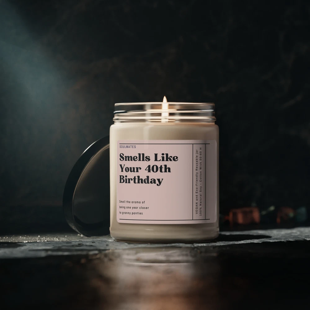 Celebrate the fabulous 40s with SouIlMates, the perfect gift for those turning the corner into a new decade! Our 40th Birthday scented candles are a delightful way to mark this milestone. Encased in 9oz glass jars (2.8β³ Γ 3.5"), these candles are meticulously crafted with a 100% natural soy wax blend, a 100% cotton wick, and adorned with a permanent adhesive label that adds a touch of flair. Revel in 50-60 hours of immersive fragrance, choosing from our selection of five aromatic scents πΌππππΏ. Key Features: π± Eco-friendly and Non-toxic: Our vegan candles embody eco-consciousness, free from lead, plastics, parabens, synthetic dyes, or phthalates. A wholesome choice for a cleaner environment. β»οΈ Reusable Glass Vessel: The candle resides in an elegant glass jar, offering the dual charm of delightful scents and a reusable decor piece. Sustainability meets sophistication! π Celebratory Scents: - π Apple Harvest: Ripe apple fragrance with bright fruit notes and a touch of spice. - π Cinnamon Vanilla: A harmonious blend of spicy cinnamon and sweet vanilla accords. - πΈ Clean Cotton: Essence of cotton blossom, lemon, linen, and sandalwood. - π Sea Salt + Orchid: Invigorating mix of sea salt, ozone, jasmine, lily of the valley, and tonka bean. - πΏ White Sage + Lavender: Tranquil lavender with camphor, chamomile, sage, and cedarwood. π Assembled in the USA: Support locally crafted excellence. Our candles are assembled in the USA, bringing together global elements to create a truly special gift. Show your love with SouIlMates and embrace the magic of the 40s! Thank you for supporting us β€οΈποΈ. 9oz Diameter, in 2.80 Height, in 3.50
