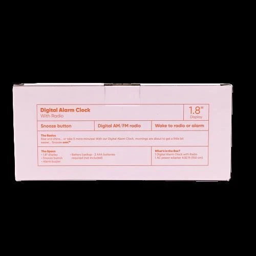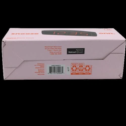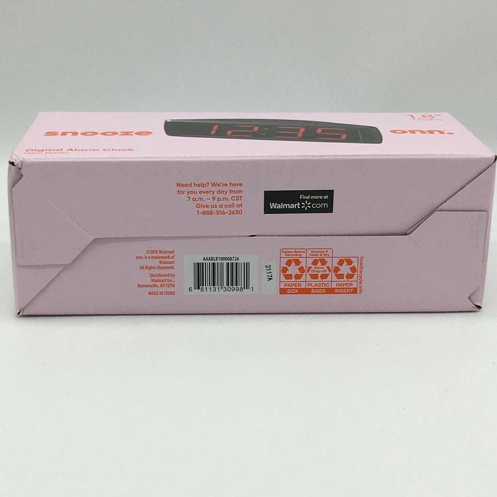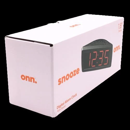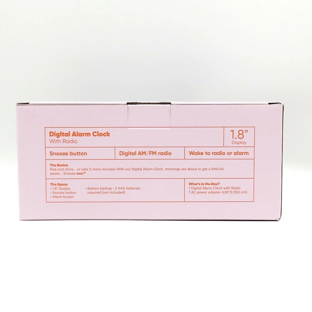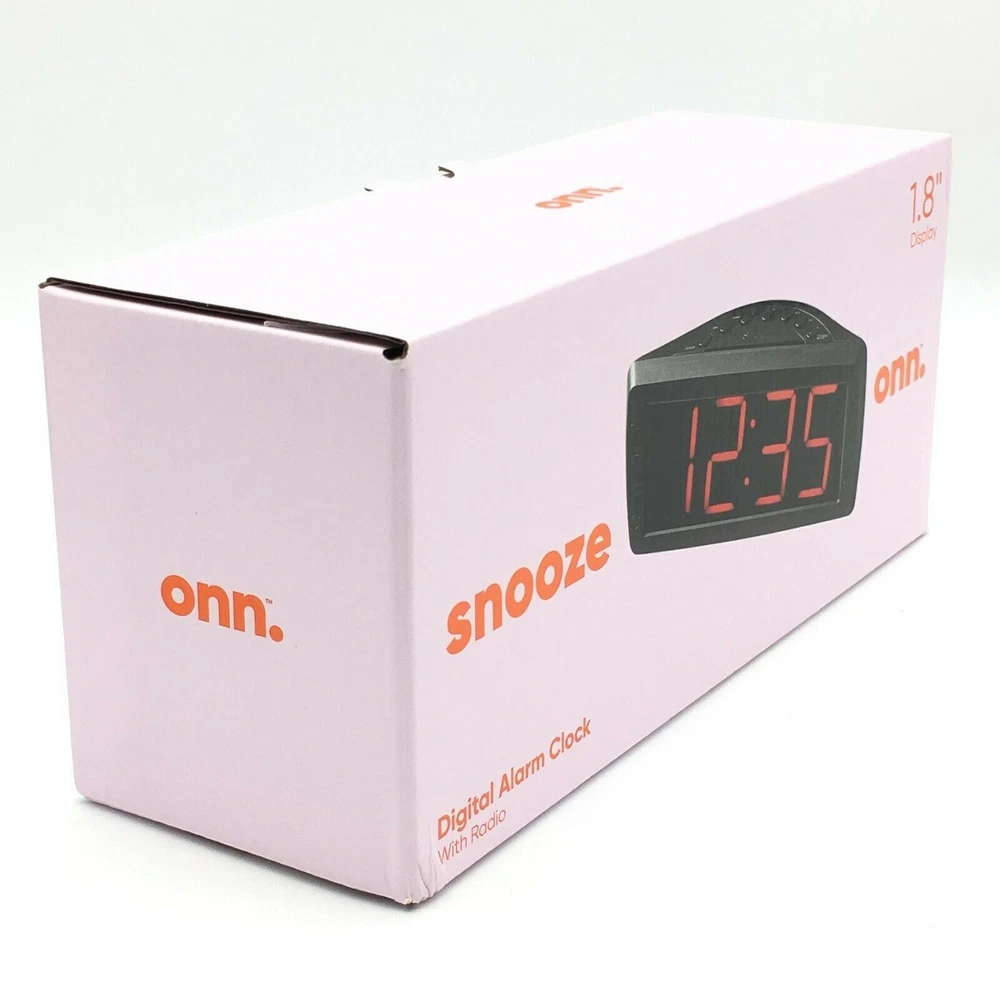 This ONN AM/FM Digital Alarm Clock Radio is a perfect addition to your home decor. With a large 1.8" digital display, you can easily see the time and radio frequency. The clock radio is powered by an electrical source and has a quartz movement for accuracy. In addition to its functionality, this clock radio also has a snooze feature and battery backup. It is perfect for those who need an extra few minutes of sleep in the morning. The black color and boxing theme make it a stylish addition to any room. Get your hands on this ONN AM/FM Digital Alarm Clock Radio today! The box is a little dirty from storage .