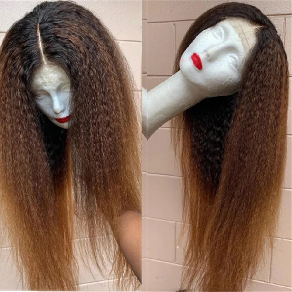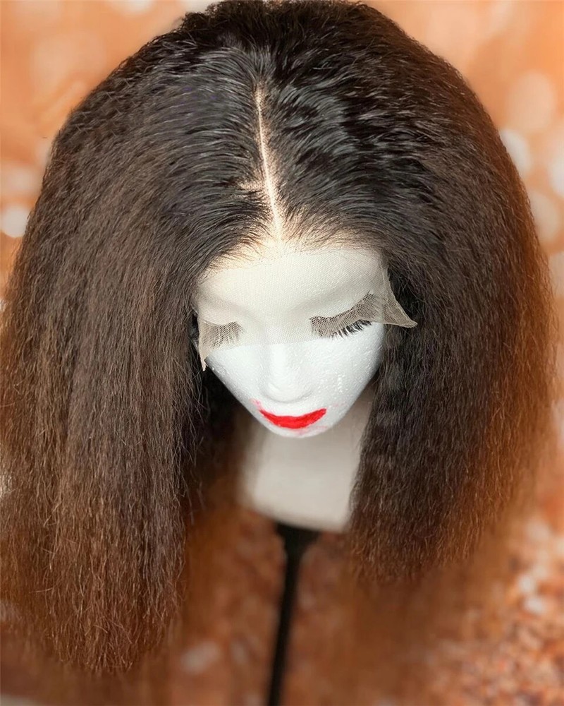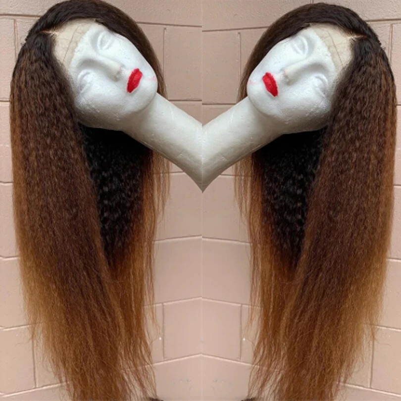 HomeSoft Ombre Brown Kinky Straight 180 Density Lace Front Wig with Baby Hair