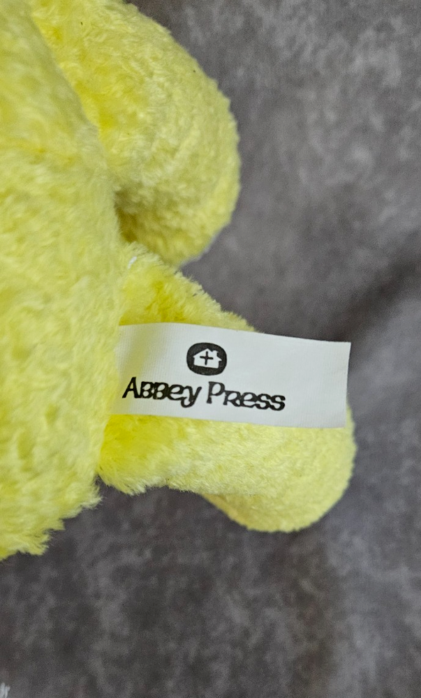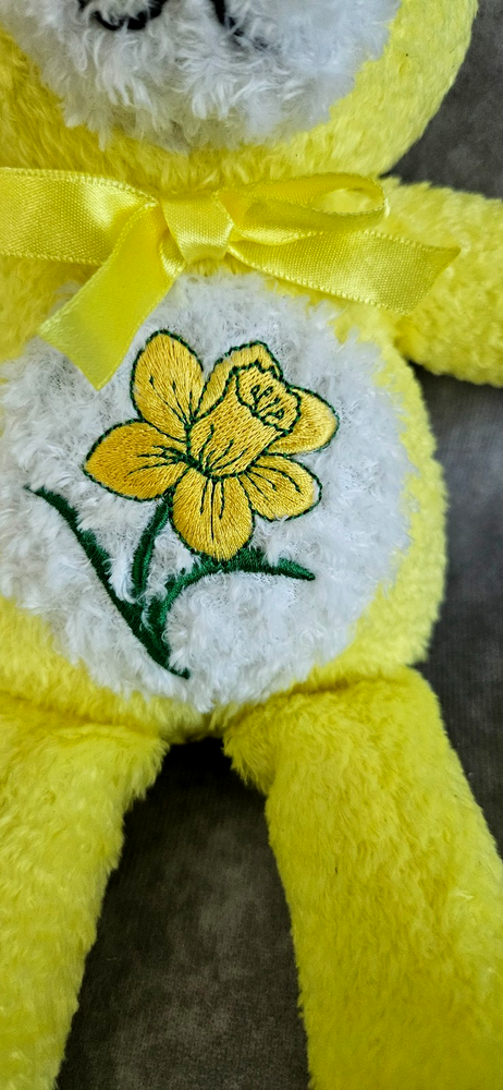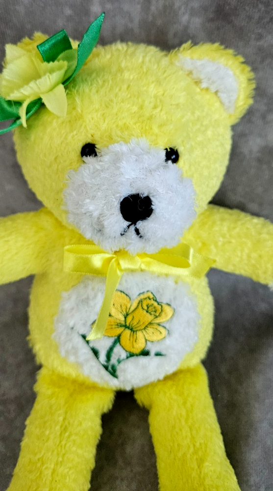 Abbey Press Yellow Stuffed Teddy Bear Daffodil on Tummy This is Like New - very clean 12" long, Body is 5" wide