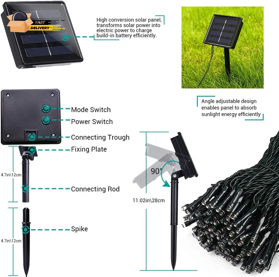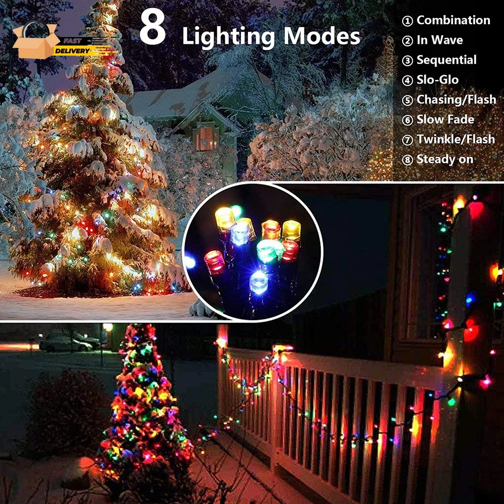Store New Arrivals Add to Favorite View Feedback Contact Solar Christmas Lights, 2 Pack Total 144 FT 400 LED 8 Modes Waterproof Solar Christmas Lights Outdoor for Christmas Decorations (Multicolor) Description Light Source Type LED Style String Lights Number of Items 2 Power Source Solar Powered Number of Light Sources 200 Control Method Touch Theme Christmas Batteries Included? No Assembled Height 4.49 inches Controller Type Button Control Batteries Required? No Product Dimensions 5.94 x 5.55 x 4.49 inches Material Plastic Assembled Width 5.55 inches Seasons Christmas Is Discontinued By Manufacturer No Included Components 2 x 200 LED Solar String Lights, 2 x Solar Panel with Ground Stake Item dimensions L x W x H 5.94 x 5.55 x 4.49 inches Indoor/Outdoor Usage Outdoor Country of Origin China Light Color Multicolor Water Resistance Level Waterproof Item Weight 1.85 pounds Occasion Christmas Special Features Automatic On-Off Special Feature Automatic On-Off Color Multicolor Voltage 1.2 Volts Assembled Length 5.94 inches Size 200LED*2 Solar Powered and Auto On/Off: These multicolor solar Christmas lights use solar energy, eliminating extra electricity costs and battery replacements. The light sensor charges the lights by day and turns them on automatically at night 8 Modes and Memory Function: Use the On/Off and mode buttons to select from 8 lighting modes. The built-in memory chip saves your last mode setting, so you don’t need to reset it daily Waterproof: With an IP65 rating, these solar Christmas lights are designed to withstand all weather conditions, including heavy rain and snow, making them suitable for indoor and outdoor use Easy to Install: 2 Pack ,each string 72 ft (including 6.5 ft lead cable) with a solar panel and ground stake is ideal for wrapping around trees or decorating various outdoor spaces. Ensure the solar panel is exposed to sunlight Widely Used Solar String Lights: These solar-powered string lights are perfect for Halloween, Christmas, weddings, holidays, gardens, yards, lawns, fences, porches, trees, roofs, and decks Product Description Joomer Solar Christmas Lights 2 PACK 72ft 200 LED 8 Modes Solar String Lights Waterproof Solar Fairy Lights for Garden,Fence, Balcony, Outdoors Solar Christmas Lights 72ft 200 LED 8 Modes for Christmas , Garden, Patio, Fence, Balcony, Outdoors Decorations 8 Modes & Memory Function Just need to press the mode button and selects 8 different modes to satisfy your diverse needs. Super convenient. Build in Memory chip save your last modes setting and no need to reset mode every day. Light up your event/festival Ideal light for adding a fantastic atmosphere to your backyard, patio, gazebo, or lawn, or use it as a festoon to celebrate your wedding, anniversary, or graduation in style. Impress your bistro, cafe, or party guests with ambiance. Easy to install & Auto ON/OFF Built-in Lighting sensor technology, the string lights will light up automatically at dusk and automatically turns off at dawn. All you need to do is set it up and the lights will work automatically. Just hang the lights anywhere you like, set the panel somewhere it will get lots of sun, and use the stake to position it. NOTES How to check the string lights work during the Daytime? A. Completely cover the solar panel, and the String Lights will light up. B. If not, Leave the Solar Panel in the sun for an hour and then completely cover the solar panel again and it should light up. Make sure that the solar panel is NOT sheltered from the sun, because it needs to absorb enough energy from the sun. It is ONLY designed to be protected from rain. Please do NOT immerse it in the water. The solar string lights have a memory function . It will return to your previous setting when you turn it off and turn it on again. The solar panel is with light sensor feature ,so that the string lights can automatically turn off at dawn and turn up at dusk. High Efficiency Solar Panel & Adjustable Design With less charging time and more working time, a full charge of 6 hours will work more than 8 hours. No extra electricity consumption occurred Adjustable design enables solar panels to absorb sunlight energy efficiently. 200 LED Christmas solar string lights Solar-powered led light strings, low voltage power, non-plug-in, no utility energy costs. Energy-saving outdoor solar lights have a high energy conservation rate. Lighting sensor technology: the string lights will light up automatically at dusk and automatically turns off at dawn. Waterproof: The solar Christmas lights can withstand all kinds of weather(IP65), including heavy rain and snow, perfect for indoor and outdoor decorations. What's in the box? 2 x 200 LED Solar String Lights 2 x Solar Panel with Ground Stake 1 x User Manual ABOUT US We offer the best prices around on high quality products. Our E-store includes media such as books, movies, music and games while offering electronics, toys, sporting apparel, clothing, tools, general home, garden items and more. SHIPPING We are always working hard to ensure your package arrives as soon as possible. Please understand that some factors like weather, high postal traffic, and the performance of shipping companies are outside of our control. We offer free shipping to the lower 48 states and ship within 2 business days of payment, usually sooner. We do not accept P.O. Boxes. Please provide a physical address. For shipping outside of the continental USA, we only use eBay's Global Shipping Program.The item is shipped to KY and then sent to the rest of the world. International customers are responsible for all duties and taxes. Continue to check out in order to calculate costs for shipping the item to your country. Messages regarding eBay's Global Shipping Program MUST be directed at eBay EXCLUSIVELY. RETURNS We offer a 30-Day Return Policy on items which you are not completely satisfied with. You have the option for a full-refund or an exchange of the item. No returns are available on items sh