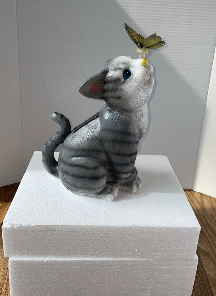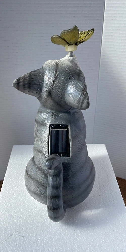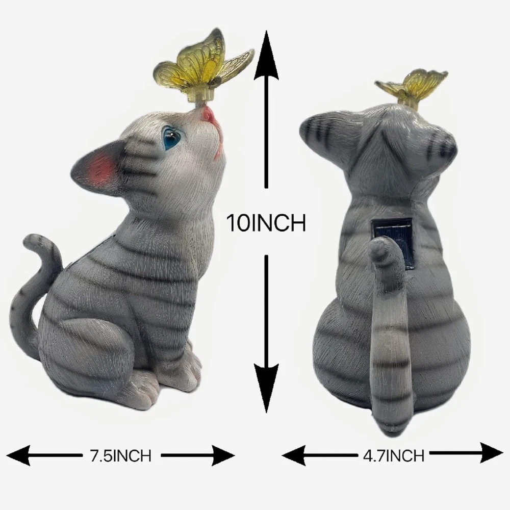 Solar Garden Statue Loving Cat Color Changing LED Lights Outdoor Decor Yard