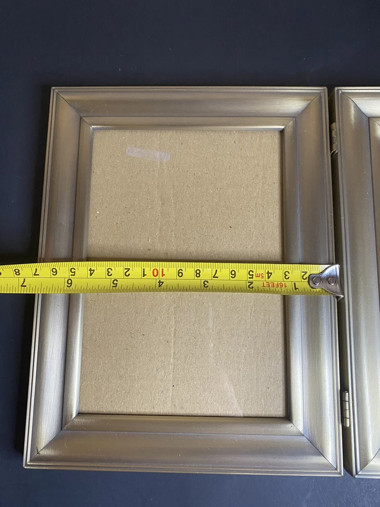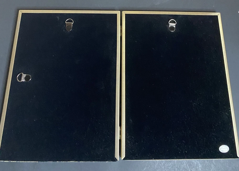 This listing is for a beautiful vintage metal picture frame that holds 2, 7x5inch photos. This frame has a lovely gold color to it and is in great vintage condition. I try to be thorough in my descriptions and photos, so any questions, please reach out.