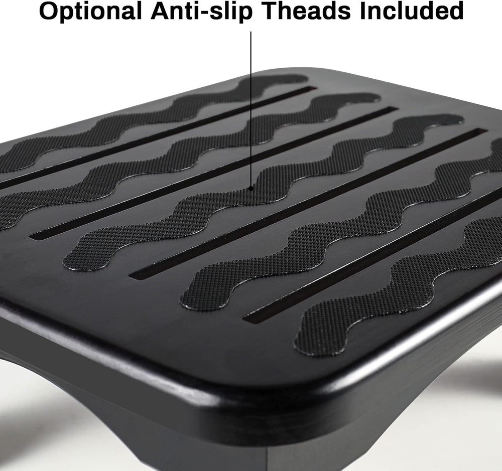 Solid Wood Bed Step Stool Super Large/Bedside Steps for High Beds/Solid Wood Super Sturdy Hold Up to 500 LBS (Dark Brown) Crafted from natural wood, which is sturdy and beautiful, relieves your fatigue and benefit to your health. Our step stool is designed to help you climb into bed with ease.You can also use it in kitchen, livingroom,bathroom and more. Smooth surface! - Our Stool is fully sanded and smooth to the touch. All corners and edges have been fully rounded and sanded .All wood screw construction.There are no exterior screw holes, no staples, nails or glue. With 5 pack black non-slip treads which you can apply or not.Our pre-cut black treads reduce slippery areas and increase safety by covering a larger stool surface. It is easy to install. Clean the surface first! Then peel and stick. Simply take out of the box and place in your living room or kitchen,bathroom.Super large and stable,16.6" Wide x 12.6" Deep x 6" High.Vented design ensures a natural flow Product Description Do you have a high bed or are you recovering from an injury? Our step stool is designed to help you climb into bed with ease. No Sharp Edges Before we assemble our stools, we round over all edges and corners. The rounded indents make it safe and easy for children to carry. There are no sharp edges to worry about. Smooth Surface Our stool is fully sanded and smooth to the touch. All Wood Screw Construction All wood screws are installed from the inside. There are no exterior screw holes. This item contains no staples, nails or glue. Specifications Net Weight: 5.5 lbs Max. Load: 500 lbs Number of Ladder Step:1 Material: Australian Beechwood Natural wood Platform size: 16.6" x 12.6" Size: 16.6" x 12.6" x 6"(L&W&H) Important information Safety Information Ensure the stool is stable before use, and do not exceed the maximum weight capacity of 500 lbs. Use non-slip treads for increased safety. Directions 1. Take out of the box and place in your desired location. 2. The stool is super large and stable with a vented design for natural flow, and can support up to 500 lbs. 3. Ensure the smooth and fully sanded surface with rounded and sanded corners and edges is safe to use. 4. Apply the 5 pack black non-slip treads for increased safety if desired.