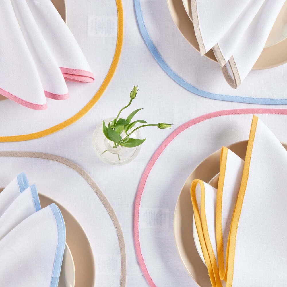 About this item 100% Pure European Flax Linen Dinner Napkins - Chloe | Handcrafted By Skilled Artisans Size - 20 x 20 Inch, Set of 4 Fabric Napkins | Available in Variety of Colors Easy Care - Machine Washable, Low Iron as Needed, Steam Iron for a crisp look. The beauty of each pure linen piece is the natural fibers and classic aesthetic that mellows with each washing, betters with age and requires minimal care Like all fine linens and textiles, each batch of our linen is different and unique. Slight color, texture variations and wrinkles are an inherent quality of 100% pure linen handcrafted pieces, adding to their relaxed beauty and bringing a wonderful heirloom feel to each Create a monochromatic or mix n’match look to fit your style with our coordinating products from this collection. Available in colors, sizes and styles for celebrating weddings, bridal showers, baby showers and special occasions, entertaining for Valentine’s Day, St. Patrick’s Day, Easter, Passover, Memorial Day, 4th of July, Labor Day, Halloween, Thanksgiving, Hanukkah, Christmas and or any holiday celebrations Chloe Dinner Napkins Set a charming dinner party or holiday table accented with our Chloe napkins. Hand-crafted of 100% pure linen by our skilled artisans, each napkin is rimmed with a complimentary hand stitch trim. Available in a wide variety of dynamic colors, these napkins were designed for mixing and matching colors to create your own unique tablescape.