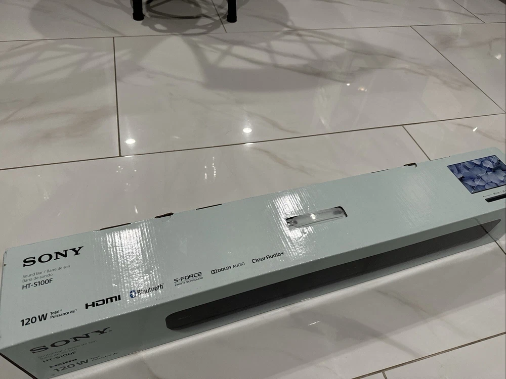 Sony 120W 2.0 Ch HT-S100f Bluetooth Stereo Soundbar (FAST Shipping)。 物品状况为New。 运送服务为FedEx 2Day One Rate Extra Large Box。
