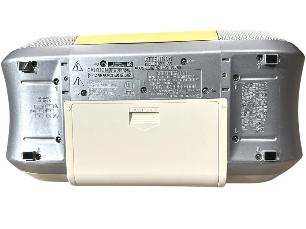 Custom Bundle:NoPlayable Media Format:CDgtin13:Does not applyColor:SilverCD Changer Capacity:1Brand:SonyFeatures:Headphone JackModel:CFD-E100Country/Region of Manufacture:ChinaUPC:Does not applyType:BoomboxBand:AM/FMAudio Outputs:Headphone Jack