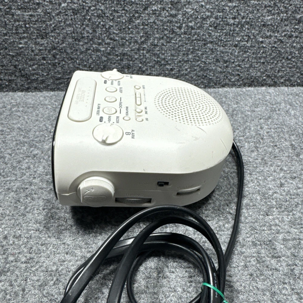 This Sony Dream Machine AM/FM Dual Alarm White Clock Radio Model ICF-C318 is a vintage/retro style clock radio that will make a great addition to any bedroom. With a digital display, this clock radio features dual alarms, a 24-hour display, AM/FM radio, battery backup, snooze function, and a quartz movement. The clock radio is made of plastic and has a white finish. It weighs 8.8 oz and measures 6 inches in length, less than 15 inches in height and width. This original Sony product has a manufacturer warranty of 1 year and was manufactured in China. It is compatible with any adult bedroom and has a digital number type. The clock radio is part of the Sony product line and has a model number of ICF-C318.