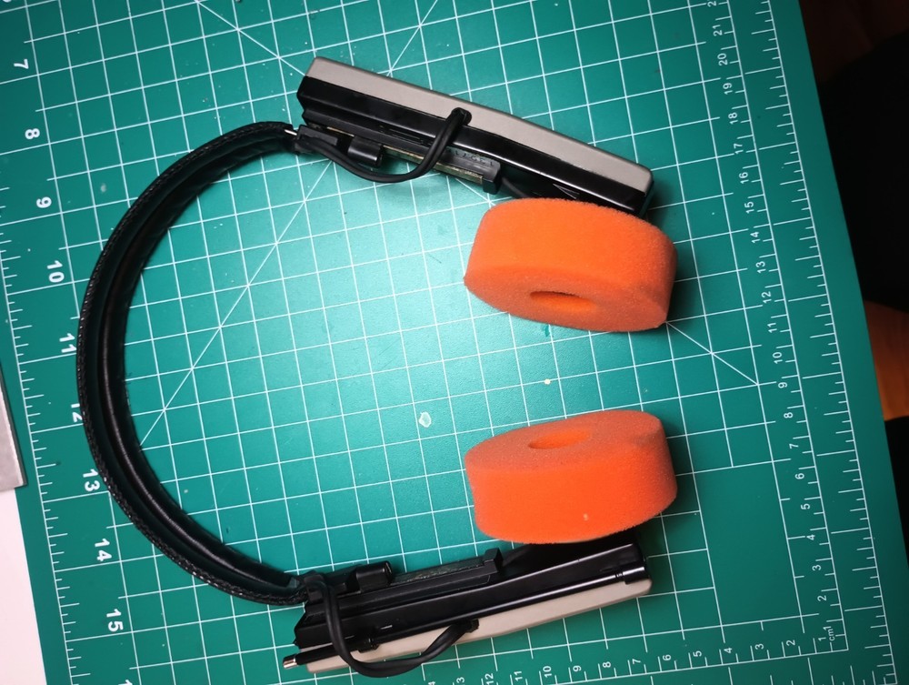 vintage 1980's fm radio headphones, not working, tried to fix them myself, but it's too complicated of a repair.