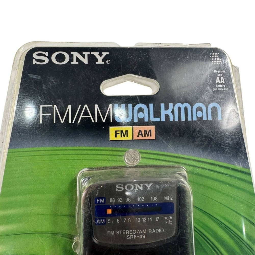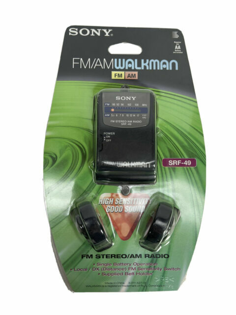 Sony Walkman SRF-49 FM/AM Radio w/ Belt Clip & TRH-2 Headphones Tested & Works There is some white paint on the cord for the headphones and some holes in the foam ear covers.