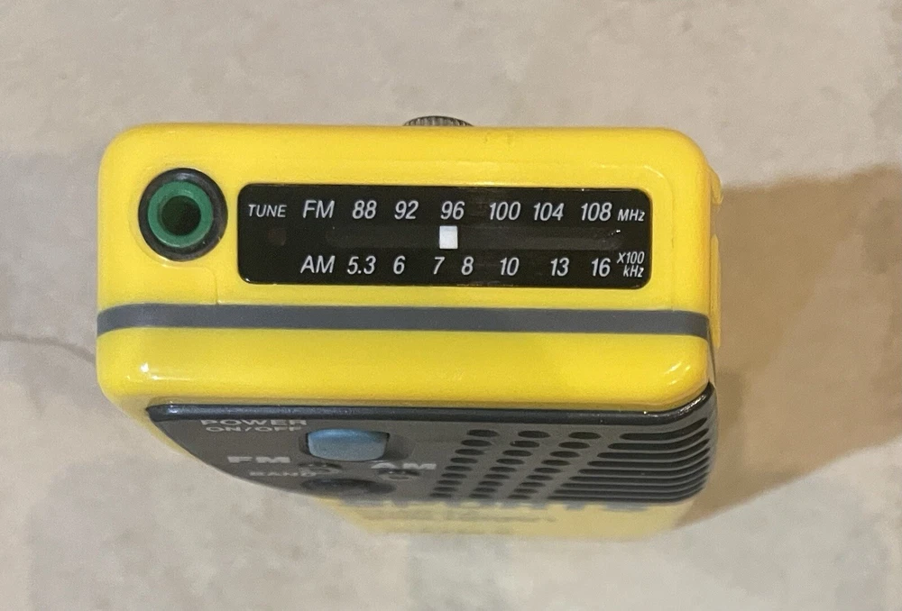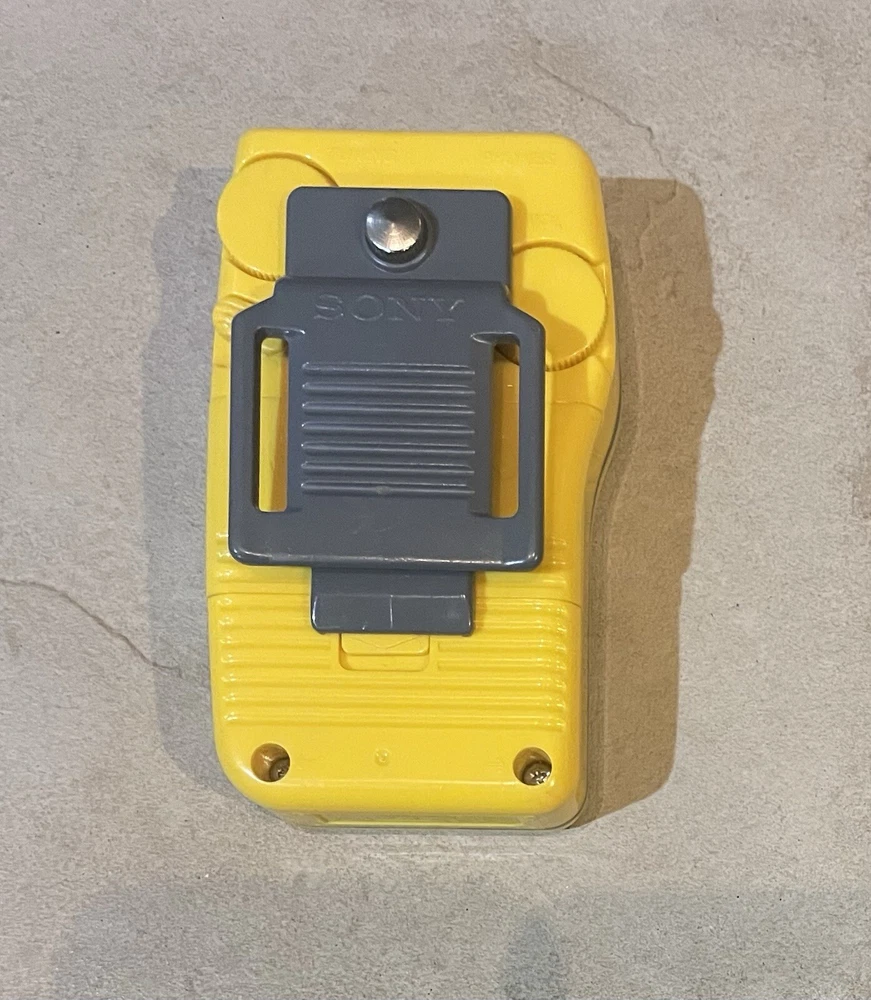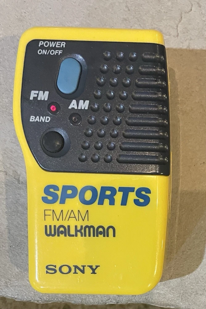 The Sony Sports Walkman SRF-8 is a portable FM/AM radio in yellow and gray colors. It features a headphone jack for private listening and belongs to the Sony Walkman product line. This radio model is designed for sports enthusiasts and those on the go, offering a compact and convenient way to listen to AM/FM radio stations. With its reliable performance and great functionality, this Sony radio is a handy companion for outdoor activities or simply enjoying music on the move. Item is in great working condition. Comes with hip clip so item can hang from your pocket. Requires two AAA batteries for operation not included.