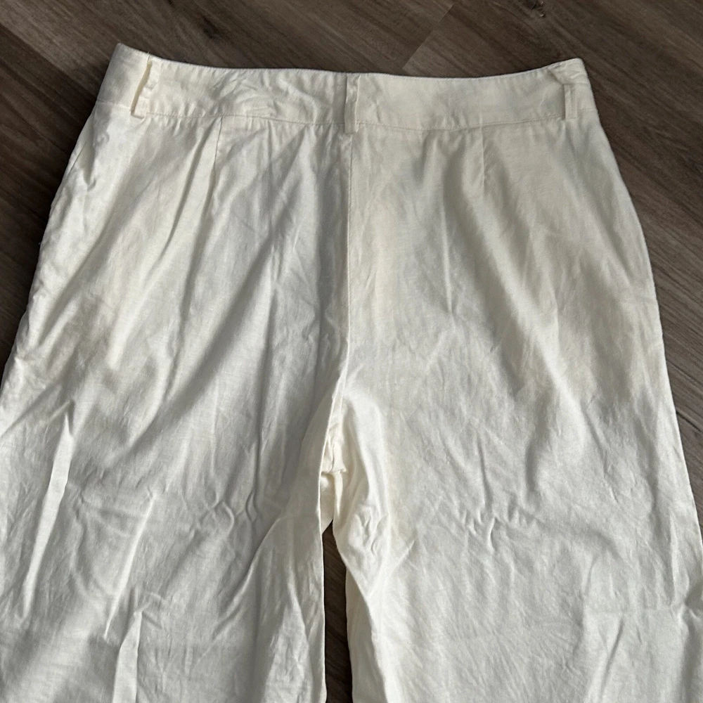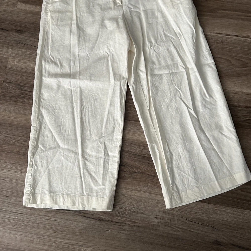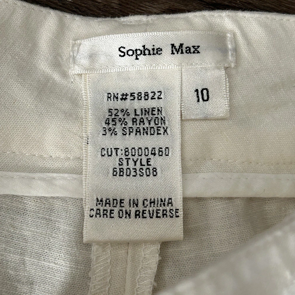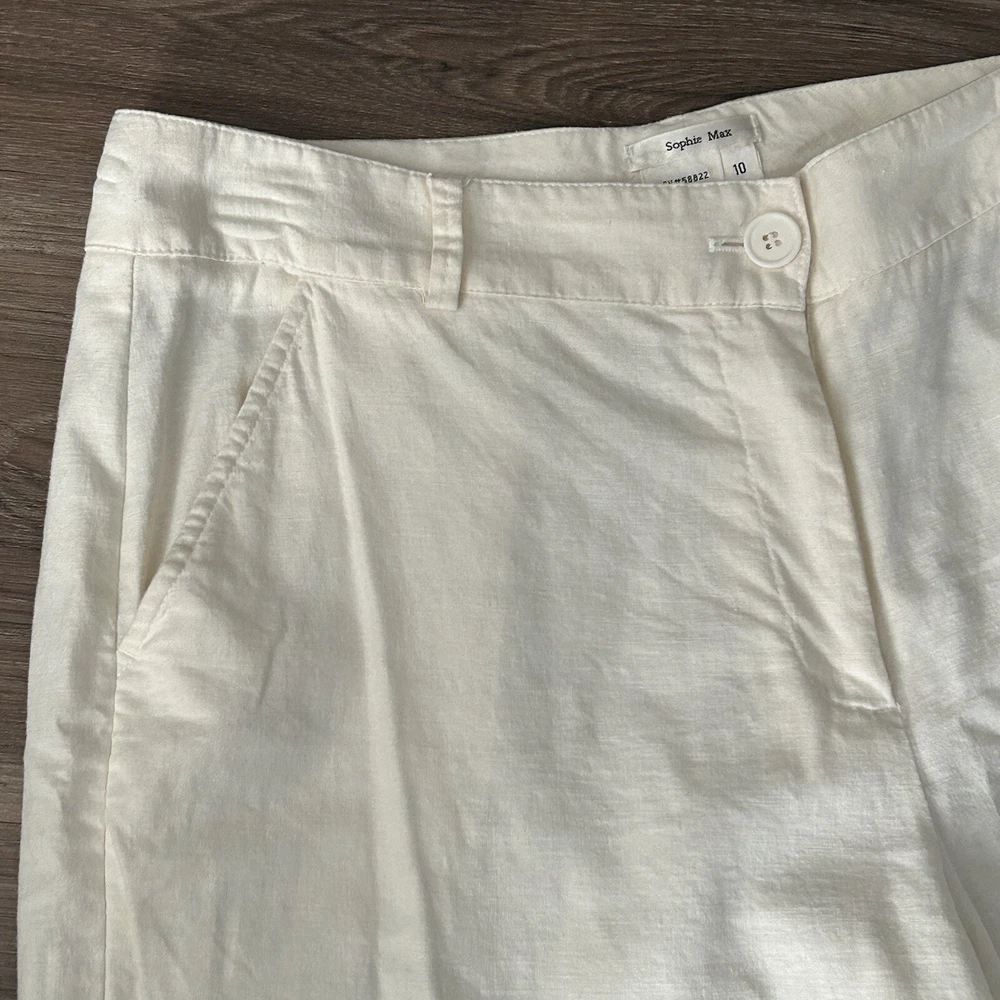 Sophie Max Ivory Linen Blend Straight Leg Crop Pants Women Size 10 in great condition/ has pockets / belt loops/ great for beach and warm vacations Waist 16” across Rise 11” Inseam 24” Approximate measurements All final sale #33 Casual, dressy, vacation, beach, vacation, Summer, boating, nautical cruise